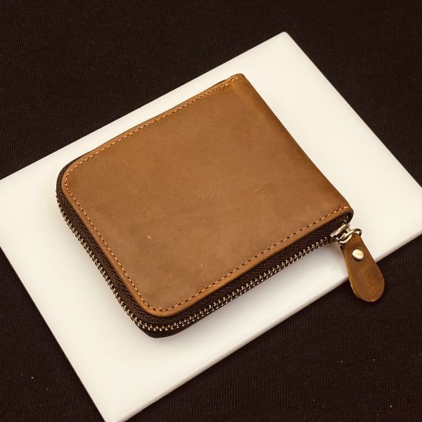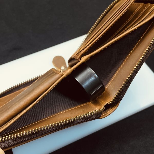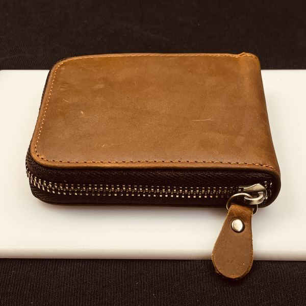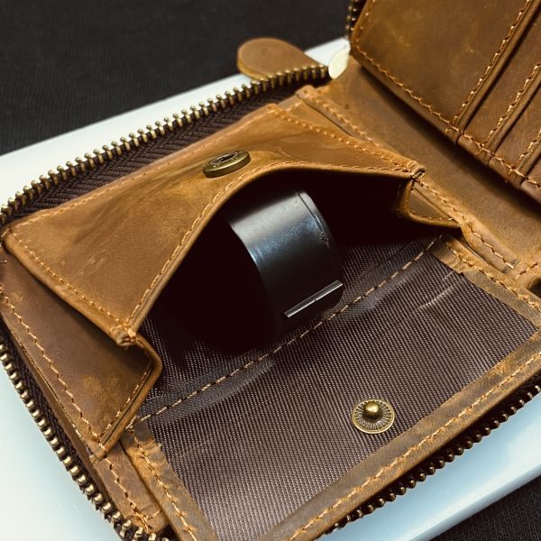 【浅草革具】ヌバックレザー 二つ折り財布 コンパクト財布 メンズ財布 レザー 革財布 本革 牛革 新品未使用 折り財布 ファスナー ブラウン