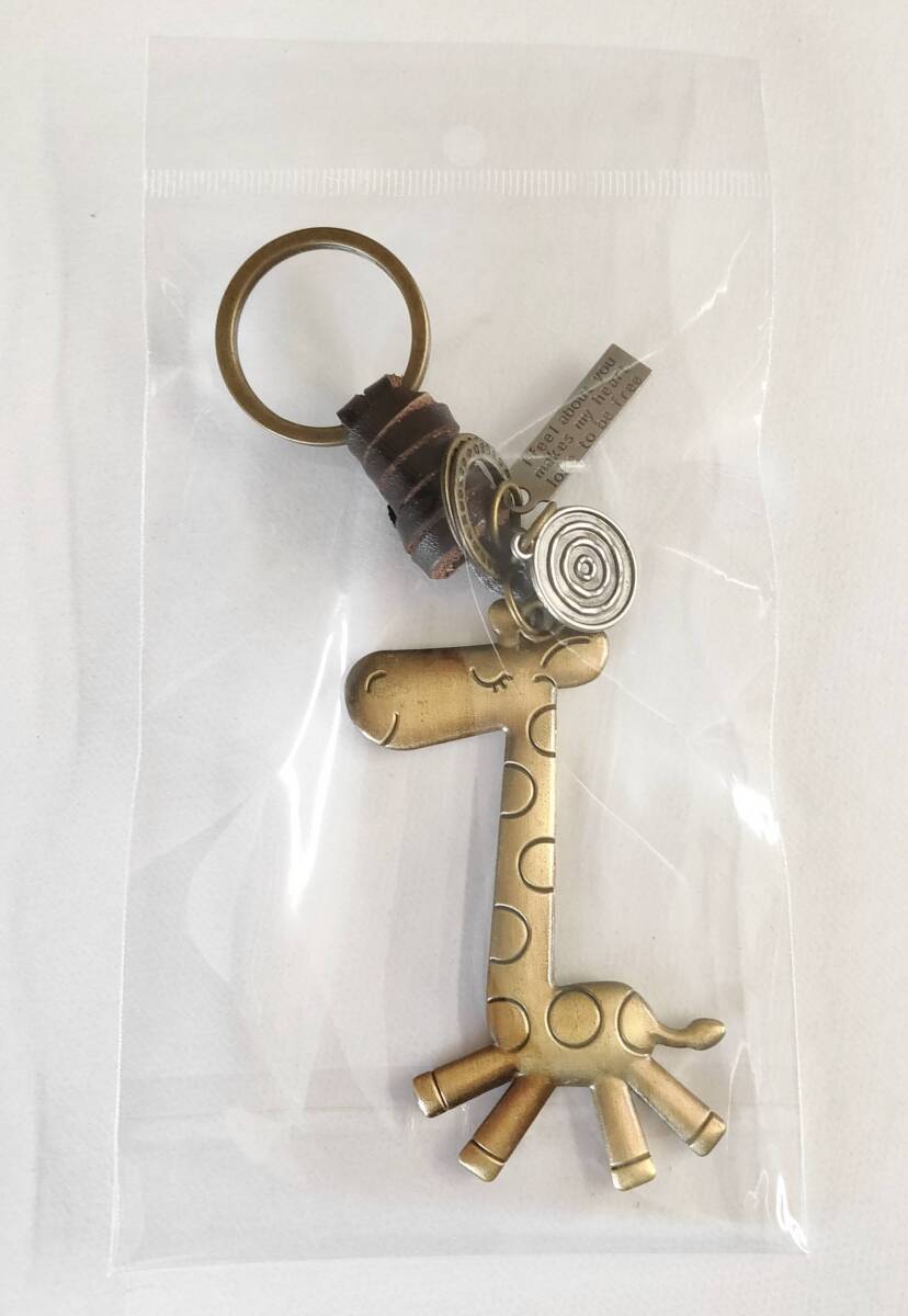 新品 キリン キーホルダー 革つき レザーとアンティークな金属チャームがポイントのキーホルダー サイズ:輪っかの頂点から下まで約14.5cm〔うちキリン身長約8cm〕 重量:約29g カラー:ブロンズ 革つきの渋くてかわいい 適度な重みのキリンのキーホルダーです。 味気ないいつのも鍵をおしゃれに可愛くちょっとしたアレンジに おすすめワンアイテムです! 是非ご利用下さい。 ※複数ご希望される方はコメント質問下さいませ。