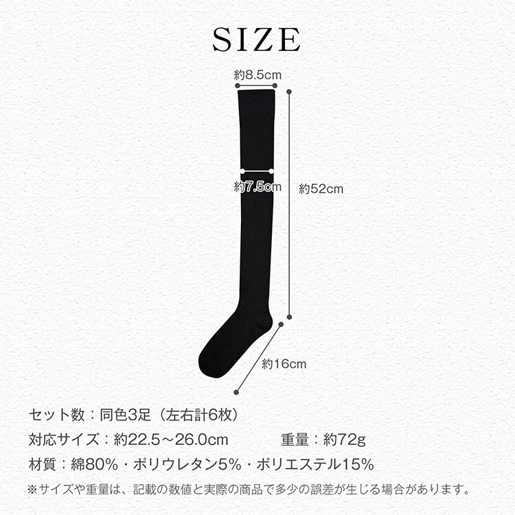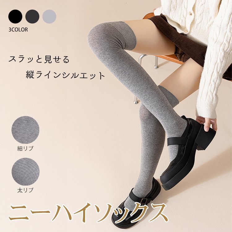 送料無料 ニーハイソックス 同色 3組セット 左右計6枚 ニーハイ ソックス 細リブ 太リブ コットン 綿混 レディース 靴下 美脚 細見え ap160