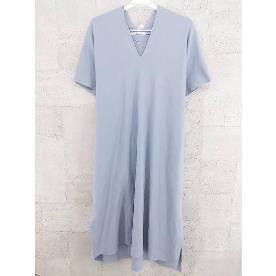 ◇ KBF Vネック スリット 半袖 ロング ワンピース ONE ライトブルー系 *