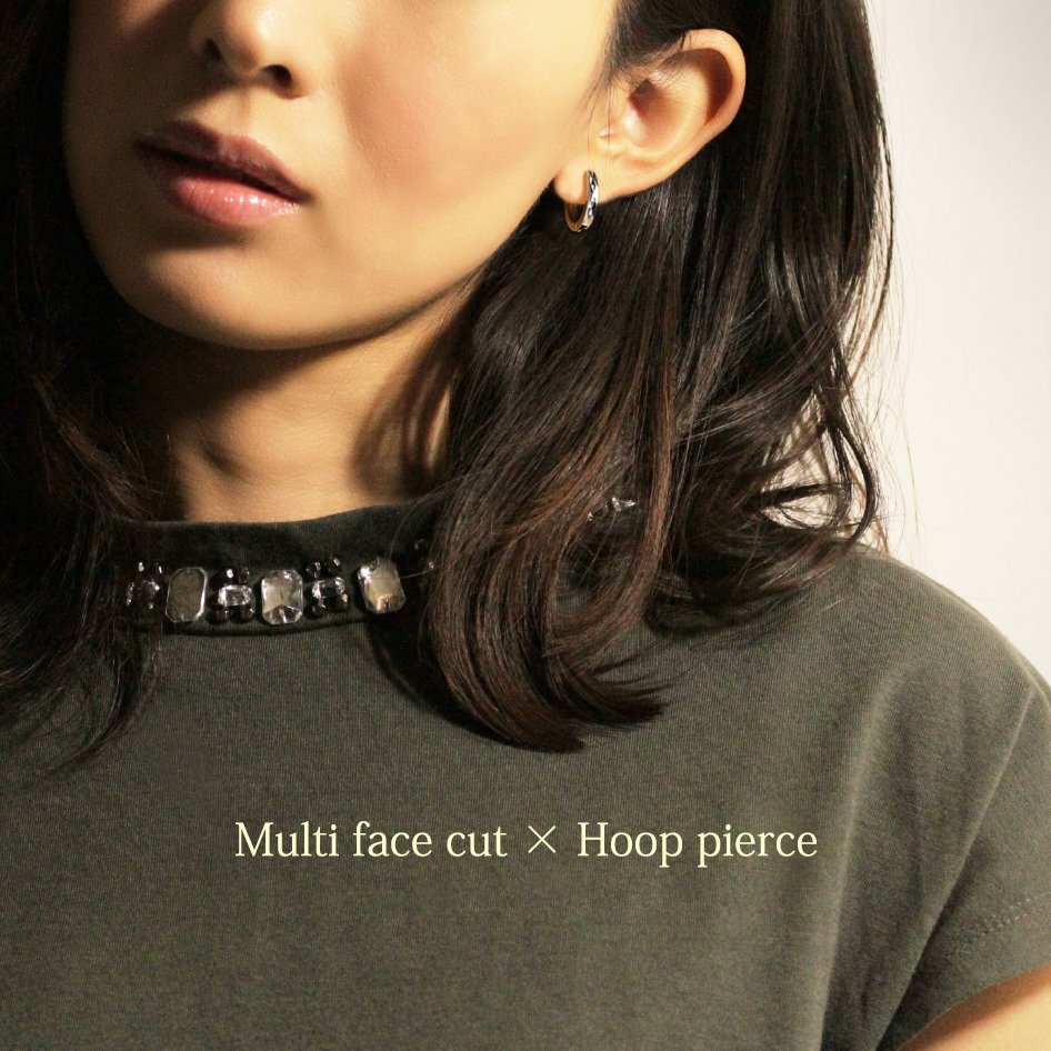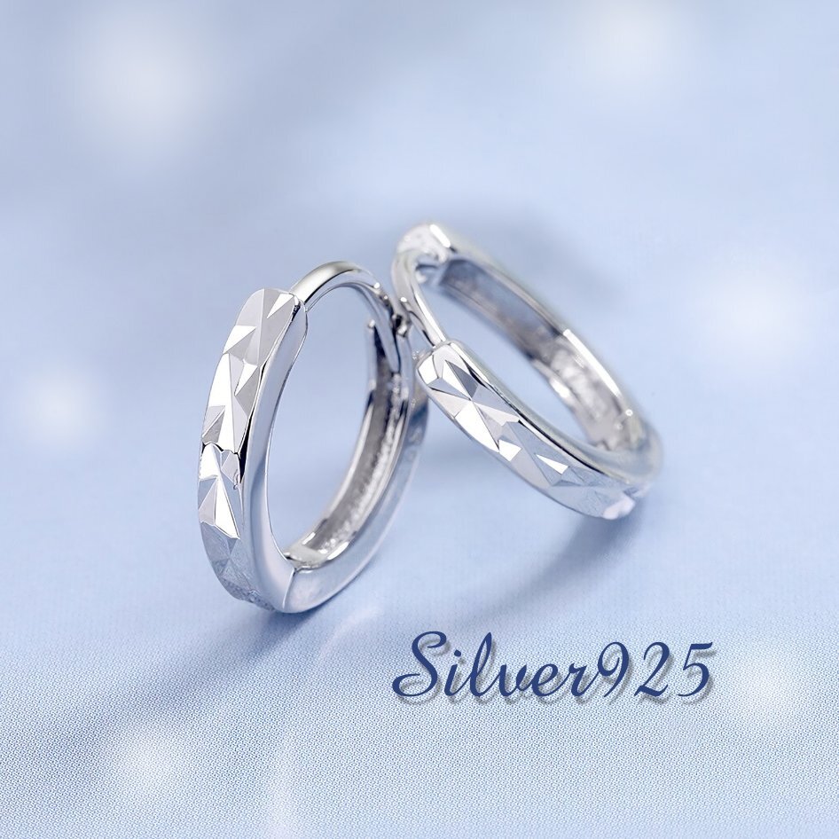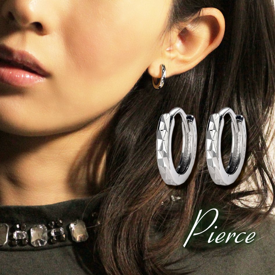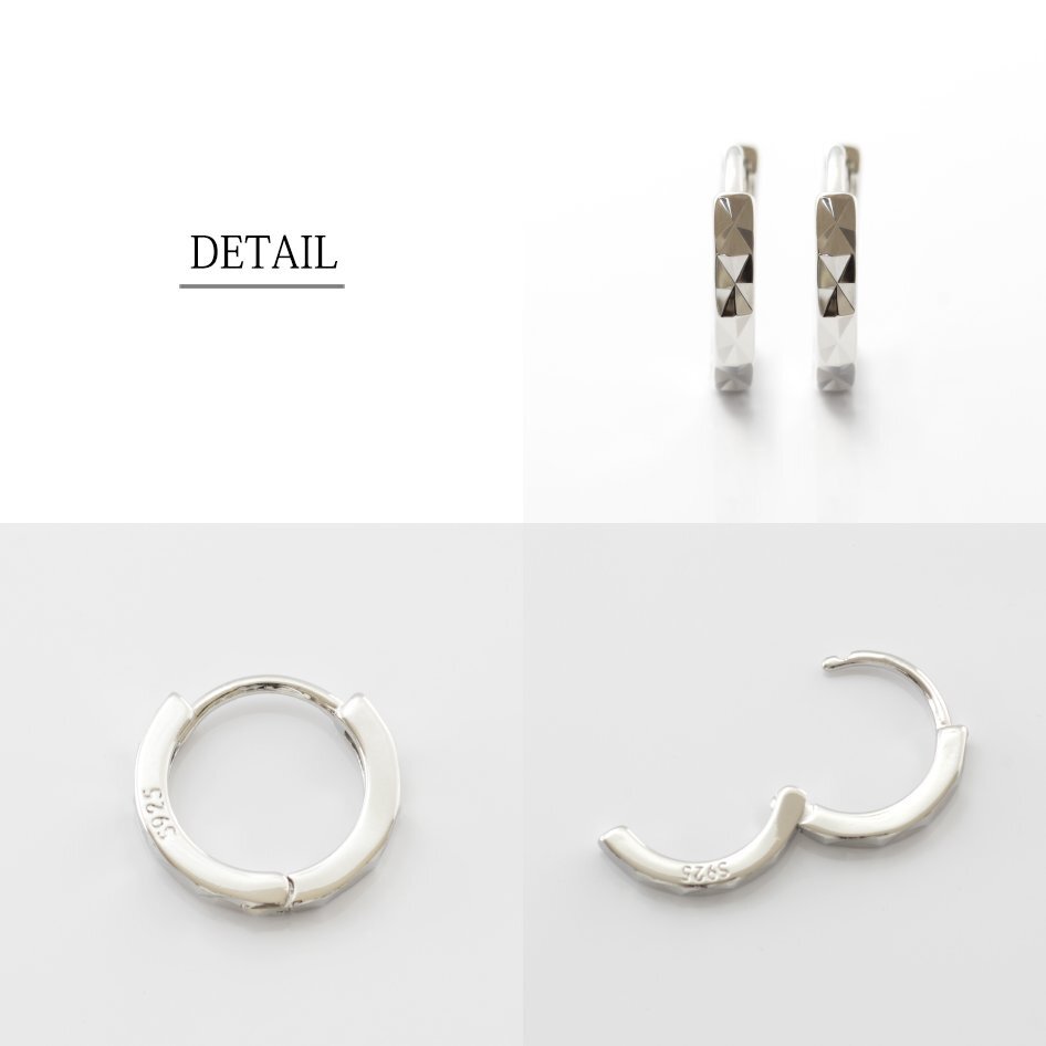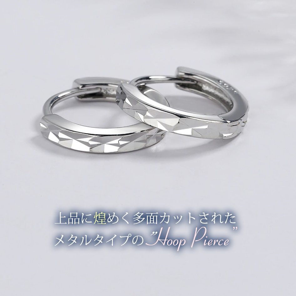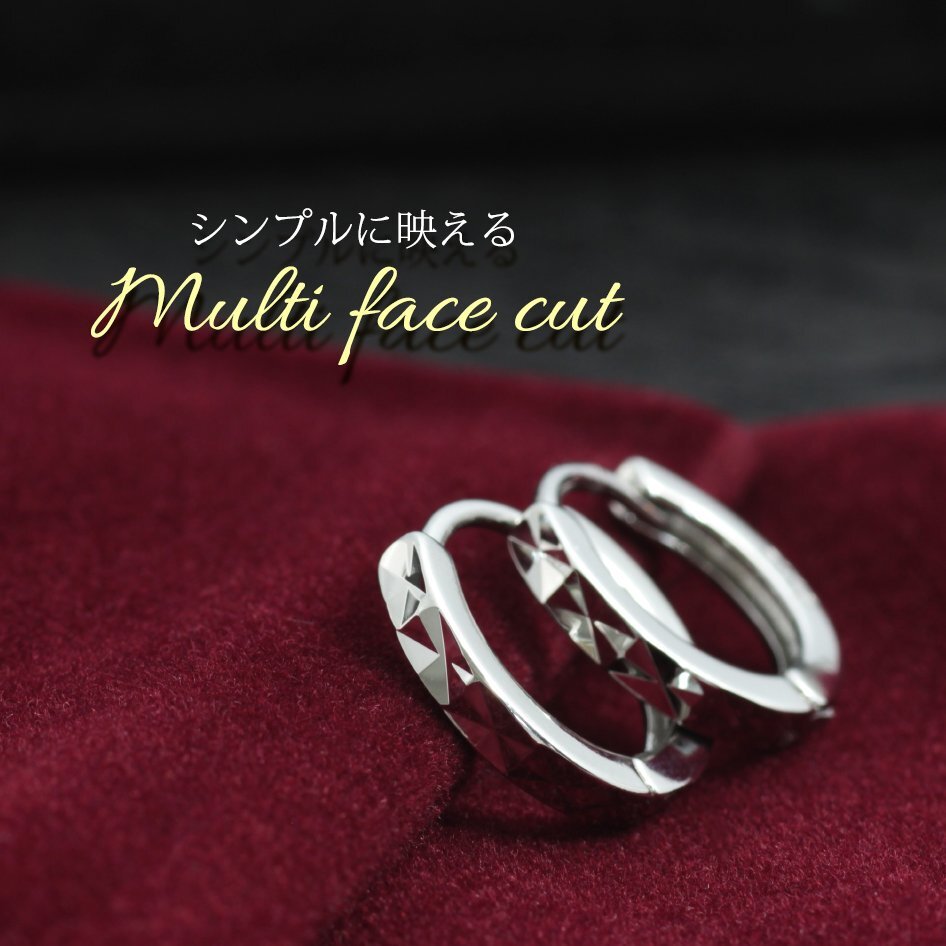 新品/フープピアス/レディース/ピアス/シルバー/銀/メタル/シンプル/小さめ/多面カット/表面加工/ひし形カット/大人/女性/30代 40代 50代