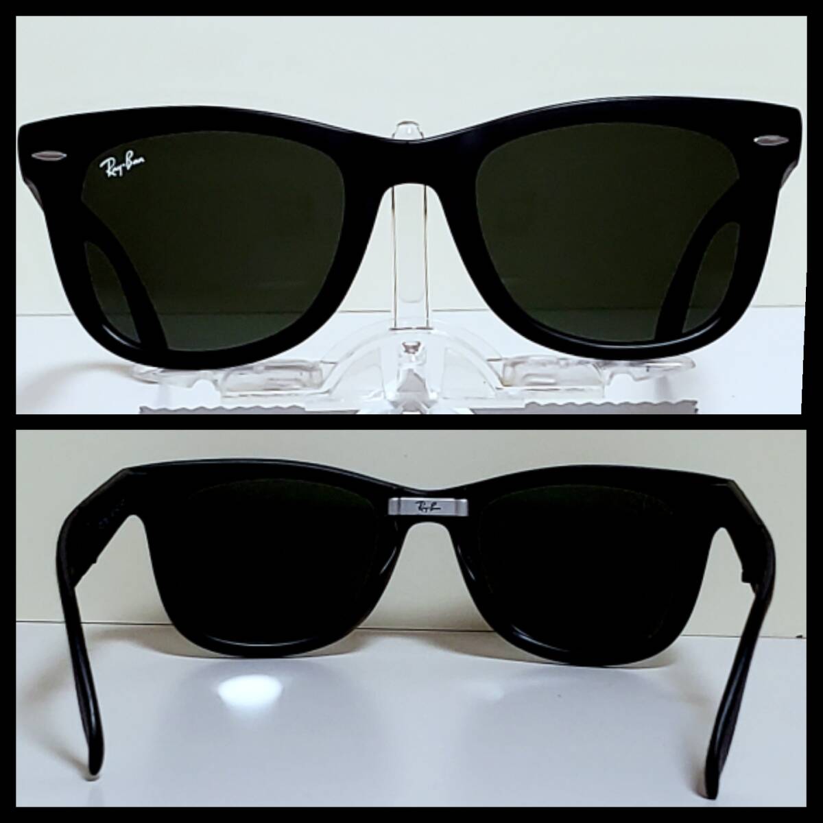 ⇒ 公式や取扱店のPR(参考用):「 WAYFARER FOLDING CLASSIC Ray-BanのWayfarer Folding Classic(ウェイファーラー フォールディング クラシック)RB4105は、実用的で持ち運びに便利。常にスタイリッシュなルックを演出するサングラスです。Original Wayfarer Classic(オリジナル ウェイファーラー クラシック)をモデルに、アイコニックなWayfarerをコンパクトに折りたためるスタイルにしたもので、実用的なおしゃれをお楽しみいただけます。Wayfarer Folding Classicは、フレームの高い耐久性を維持しながら、簡単に折りたたんで収納することができ、究極のポータビリティを実現しています。FOLDINGモデルはウェイファーラの魅力をそのままに携帯性をプラスしたモデルですが、日本人のお顔にジャストフィットする掛け心地ももう一つの魅力です。アジア仕様の表記はございませんが浅い傾斜角とお顔を包み込むフォールド感は日本人には大好評です、実用性とオシャレを追及するファンにとっては魅力あるモデルです。 」