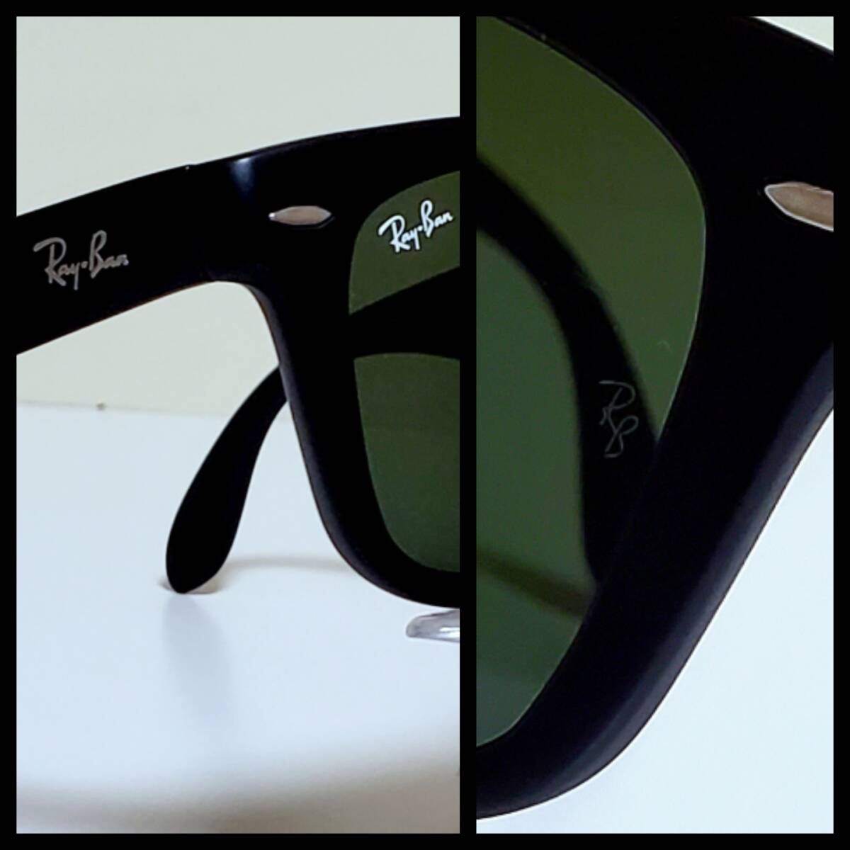 ⇒「 前後全体画像のように使用そのものを阻害するような大きな難点はありませんが、顔に密着し頻繁に付け外しするアイウェアなので、どうしても傷や汚れは避けられません。USED品である以上、汚れやダメージ・歪み・メタルフレーム特有の緑青といった経年劣化や着用劣化はありますので、状態に神経質な方は入札をお控えください。左右のレンズに”Ray-Ban”と”RB”のロゴ(画像7)が入っているようにレンズは純正品仕様です。なお、状態判断は商品本体(サングラス)に対するものであり、付属品は判断基準に含まれておりません。 」