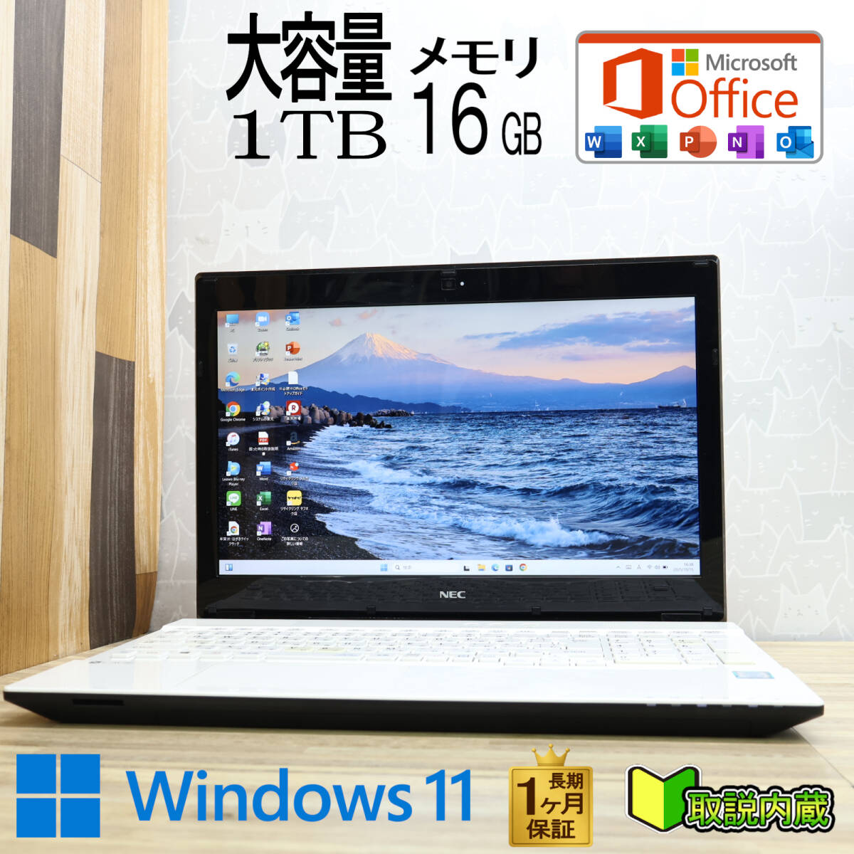 ★美品 高性能7世代i3!大容量1TB メモリ16GB★NS350H Core i3-7100U Webカメラ Win11 MS Office2019 H&B ノートパソコン★P94380