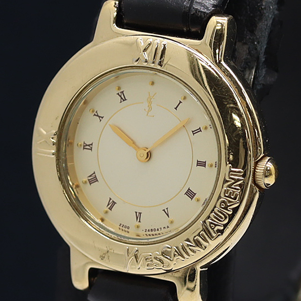 1円 稼働 イヴサンローラン 2200-229789 QZ ゴールド文字盤 レディース腕時計 2011000 11BJY SMZ
