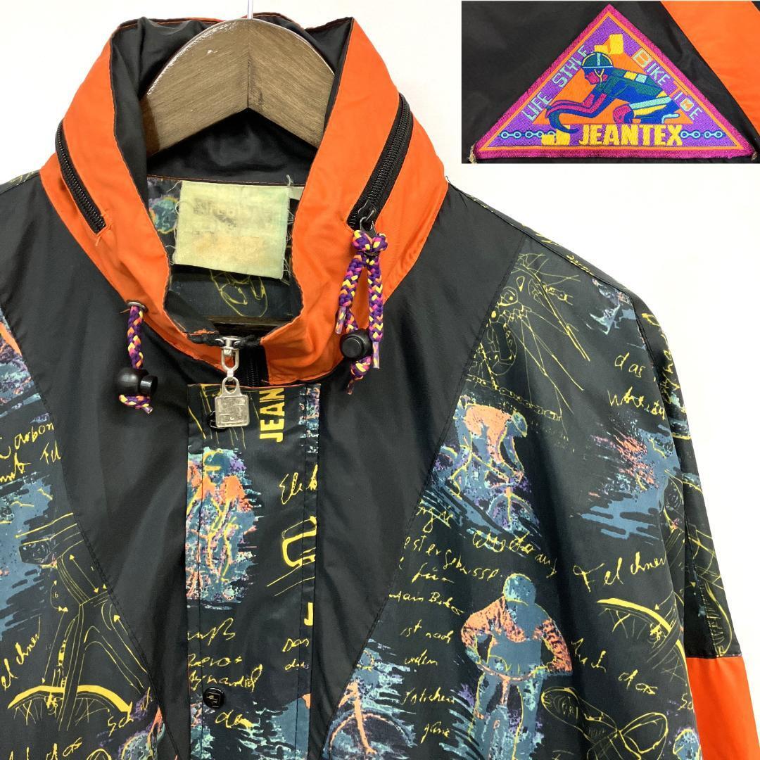 ★JEANTEX 90sヴィンテージ サイクルジャケット レトロ 総柄 パッカブルフード ユニセックス オーバーサイズ[MYB]