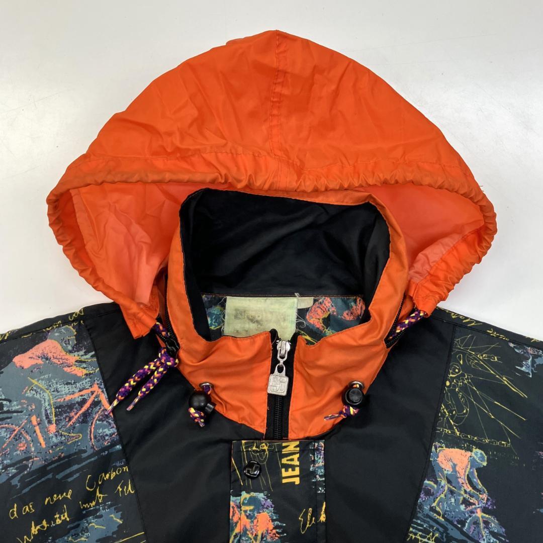 サイクリングジャケットらしく、パッカブル仕様のフード・裾ドローコードなど、ギア要素の強いデザインも魅力です。90年代特有の雰囲気をまとった希少なアイテムです。
