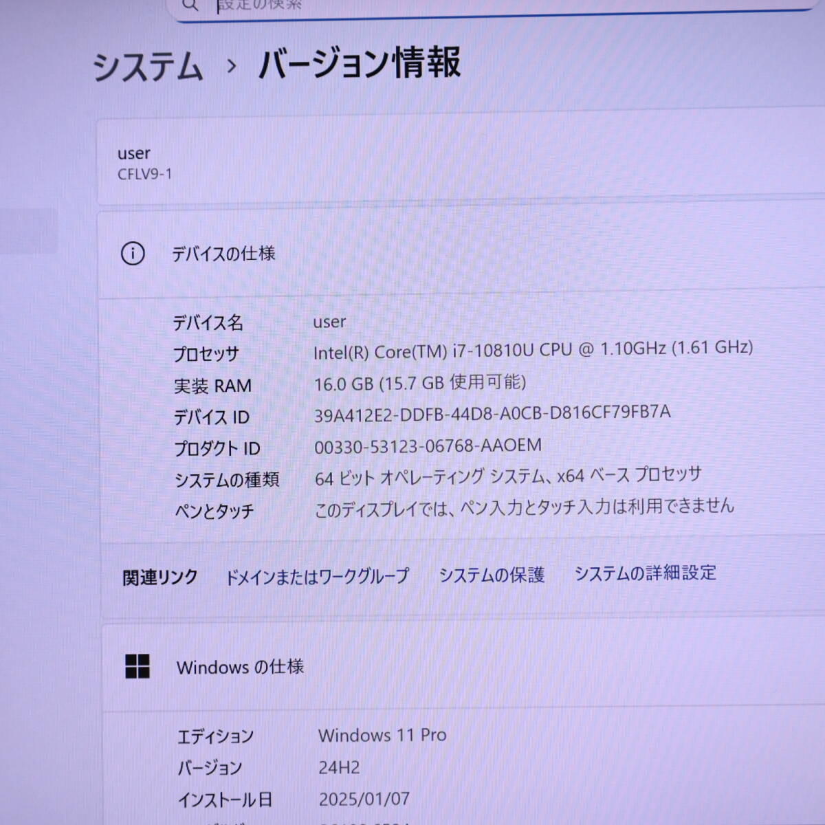 ★完動品 最上級10世代i7!M.2 NVMeSSD512GB メモリ16GB★CF-LV9 Core i7-10810U Webカメラ TypeC LTE Win11 MS Office2019 H&B★P93363