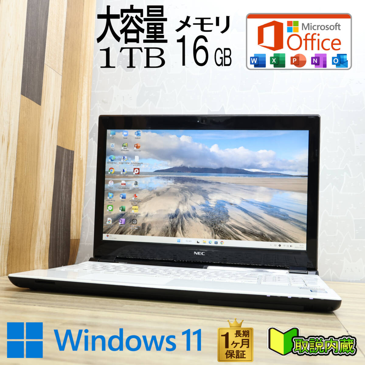 ★美品 高性能6世代i5!大容量1TB メモリ16GB★NS550C Core i5-6200U Webカメラ Win11 MS Office2019 H&B ノートパソコン★P94945