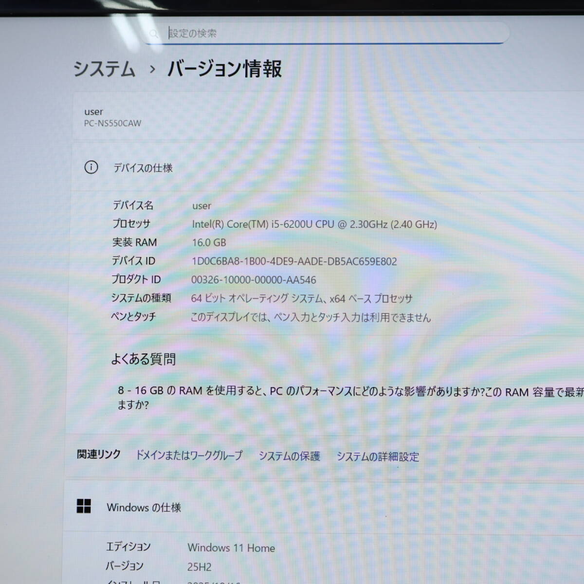 【メーカー・型名】NEC LaVie NS550C