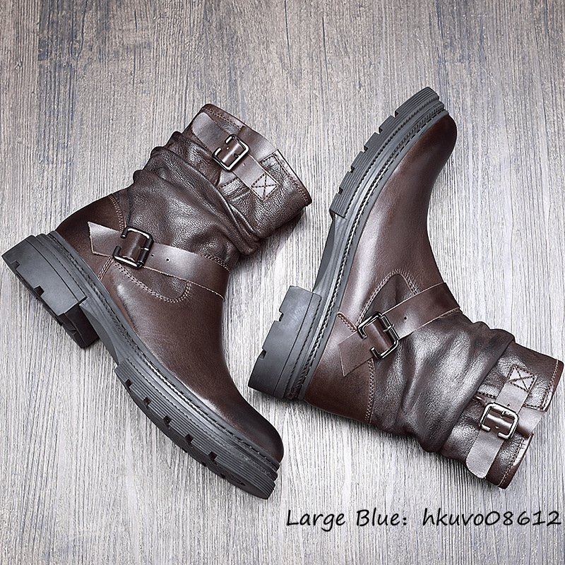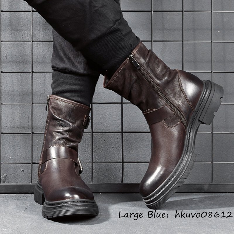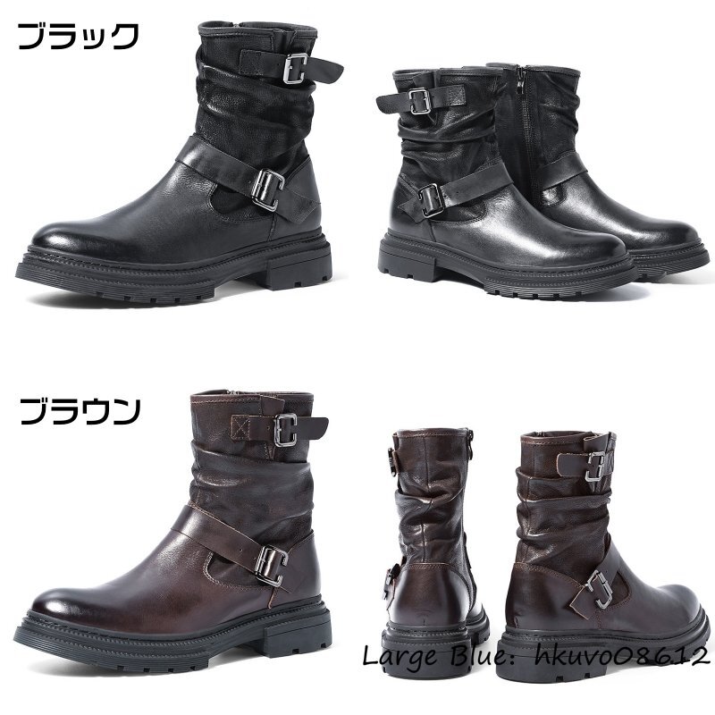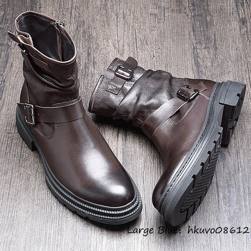 入手困難*12万 新品 メンズブーツ 本革 レザーブーツ 職人手作り マーティンブーツ エンジニアブーツ 牛革 ワークブーツ ブラウン 25.5cm