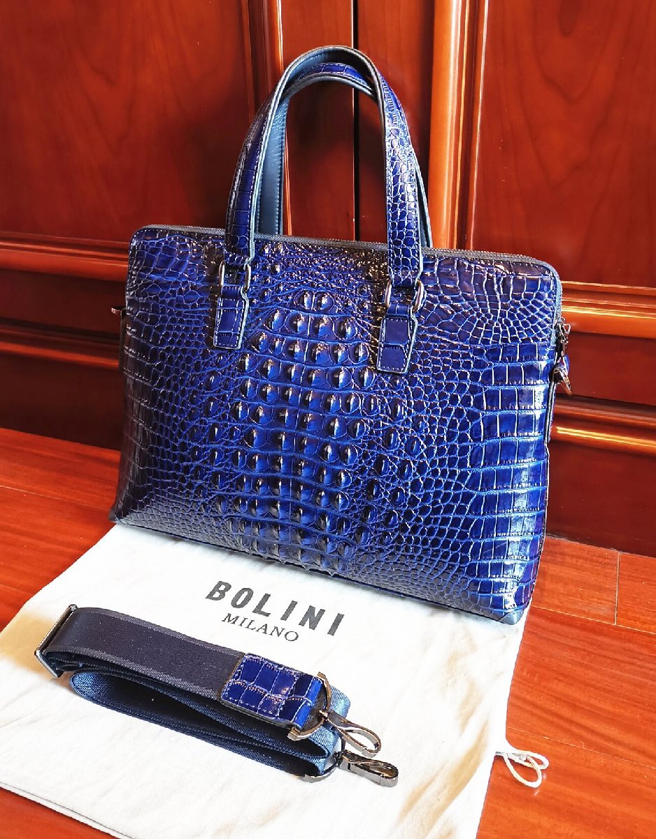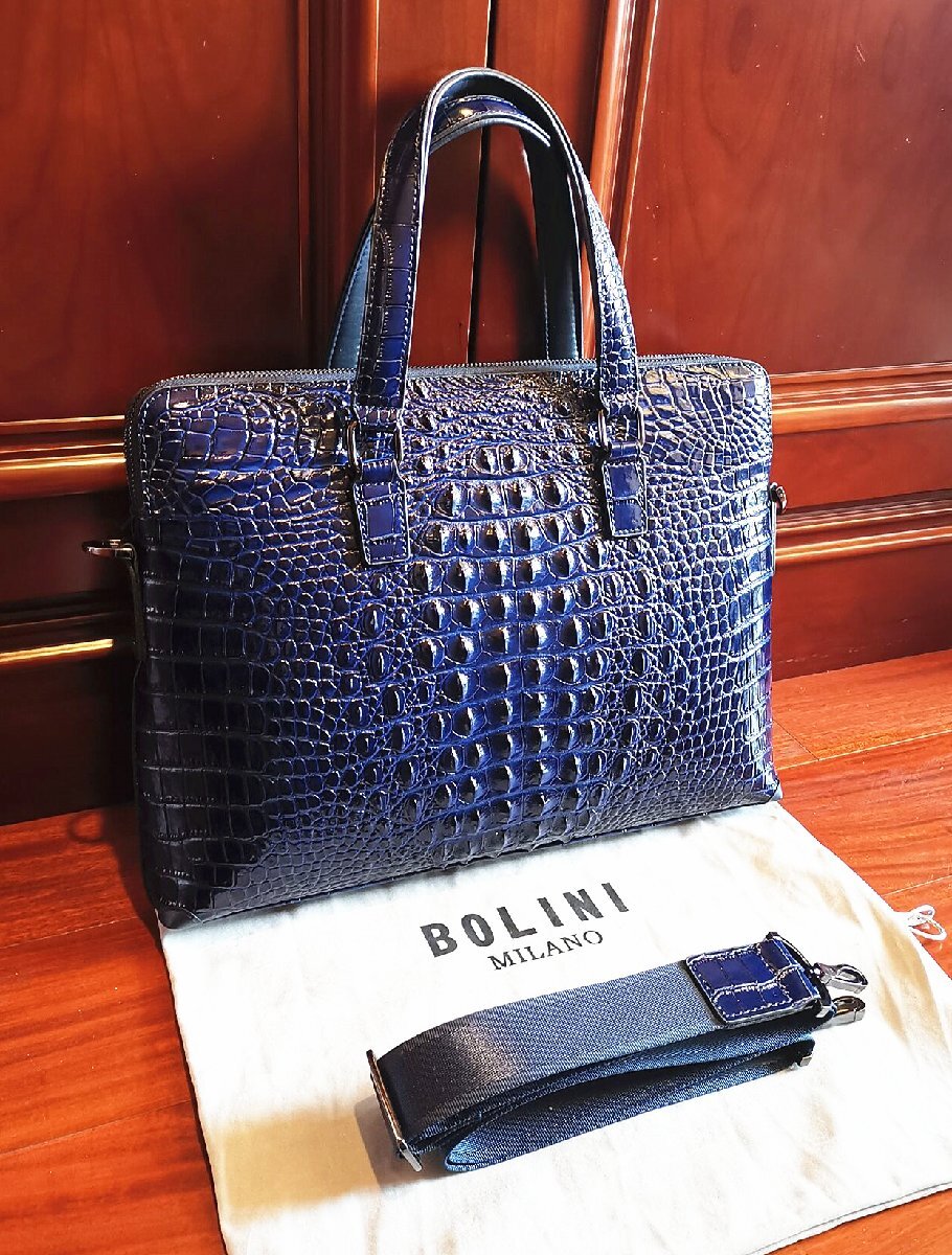 最高級逸品20万◆イタリア・ミラノ発*BOLINI/ボリニ・最上級牛革・クロコダイル*ビジネスバック/ブリーフケース・紺