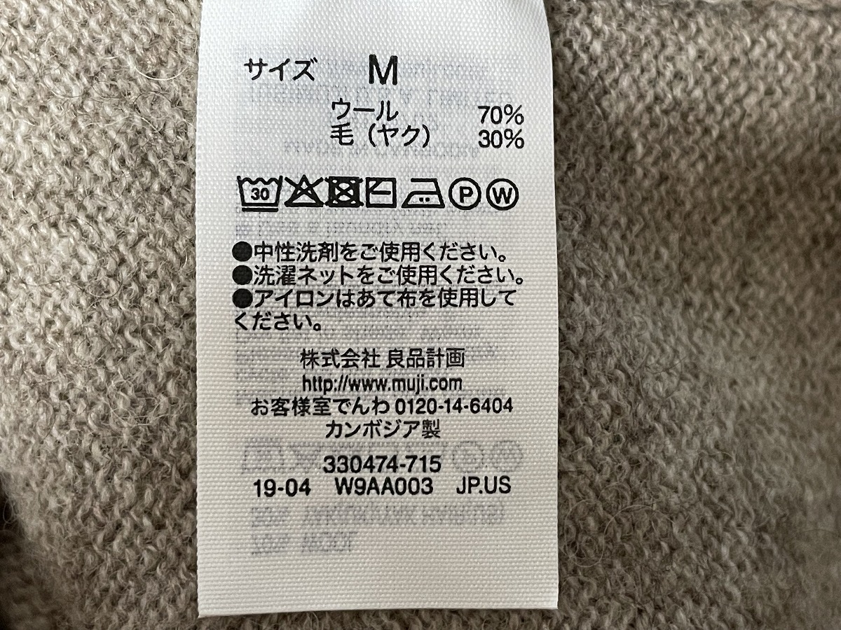 【激安1点のみ 国内正規品】無印良品 MUJl ヤク混ウール クルーネック セーター ニット 長袖 M ベージュがかったブラウン系 W9AA003