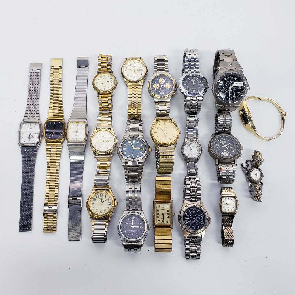 商品名:腕時計20点まとめ ブランド:ALBA アルバ 型 番:不明 年 式:不明 付属品:無し サイズ :様々 ※若干の誤差がある場合がございます。 状態について ランク 【E】 破損や欠損などが見受けられる商品ですが、素材やパーツとしての価値があり、リメイクや部品取りにおすすめの商品です。 コメント ・状態様々です。 ・部品取りの為、破損品も含みます。 ・重量にはパケ袋の重さが含まれています。 ・個別梱包ではなく、まとめて梱包して発送します。 ───────────────[ 状態ランク表 ]──────────────── 【N】 新品・未使用品の新古品です。 【S】 キズ・汚れがほとんど見受けられず、非常に状態の良い商品です。 【A】 わずかにキズ・汚れがありますが、全体的に状態の良い商品です。 【B】 キズ・汚れなど、使用感が見受けられますが、 中古品としては比較的良好な状態です。 【C】 キズ・汚れ・型崩れなどの目立つ使用感がありますが、 ご使用には問題のない商品です。 【D】 通電の確認はできておりますが、稼働や動作の確認は行っておりません。 【E】 破損や欠損などが見受けられる商品ですが、 素材やパーツとしての価値があり、リメイクや部品取りにおすすめの商品です。 ※ランクは社内基準です。 ──────────────────────────────────────── 送付方法 ゆうパック(着払い) 60 サイズ ※千葉市稲毛区からの発送となります。 ※出品時に商品を梱包しているため、 基本的に※「同梱不可」となります。 ※こちらの商品は発送のみの対応となります 防犯上の観点から、 【引取り限定】【家財便または引き取り】の商品以外は 従業員の安全の為、 直接の引取りはお断り致します。 | |||
