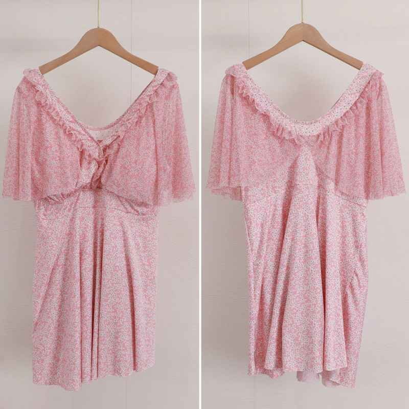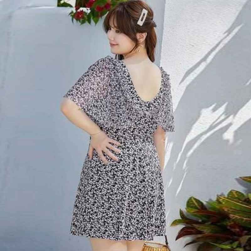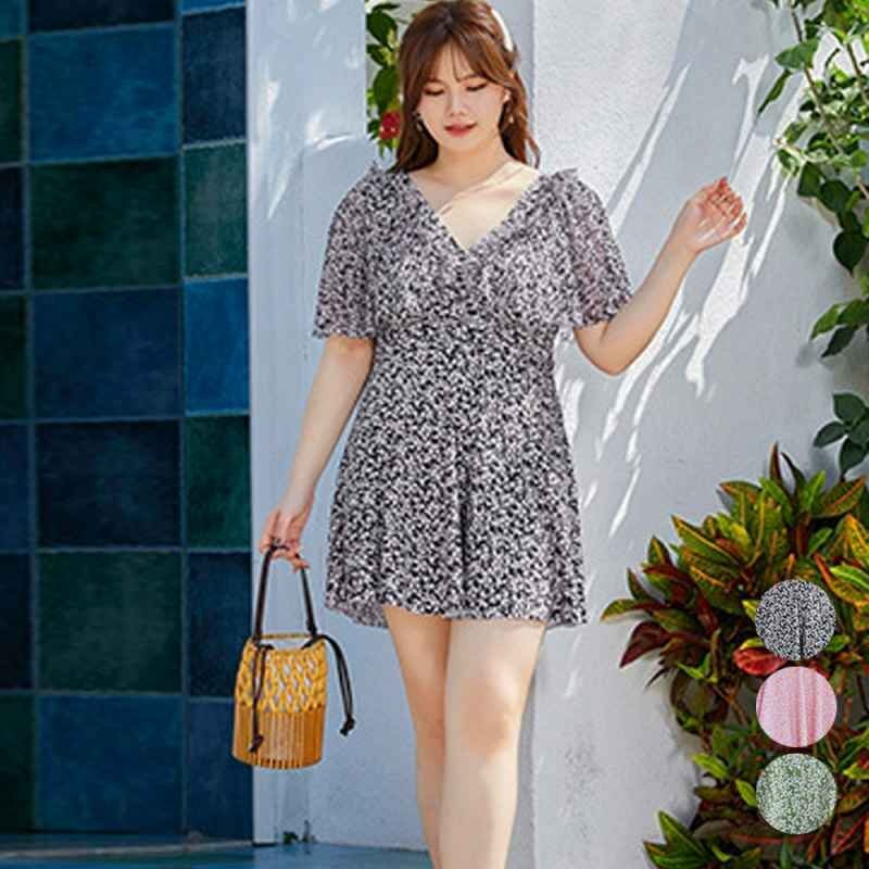 小花柄&フリルが可愛らしく、胸元を強調しながら体型をカバーするワンピース水着です。