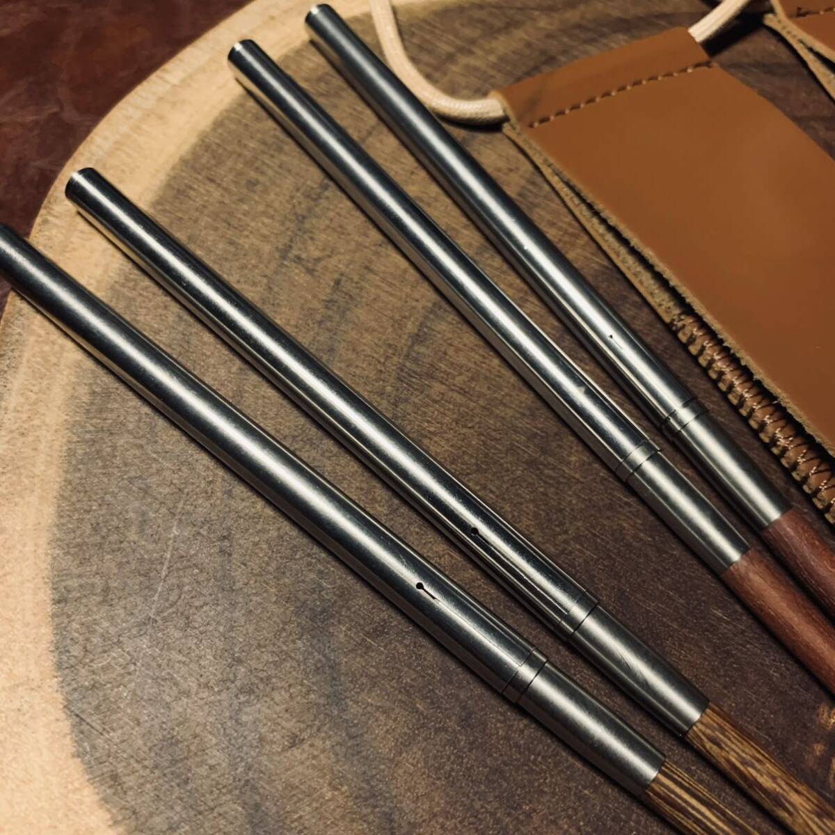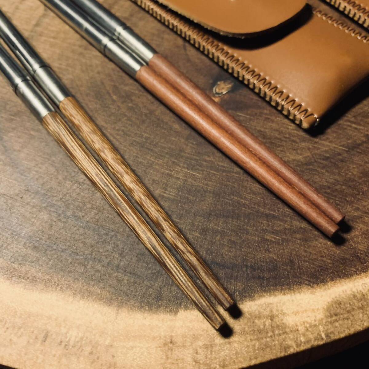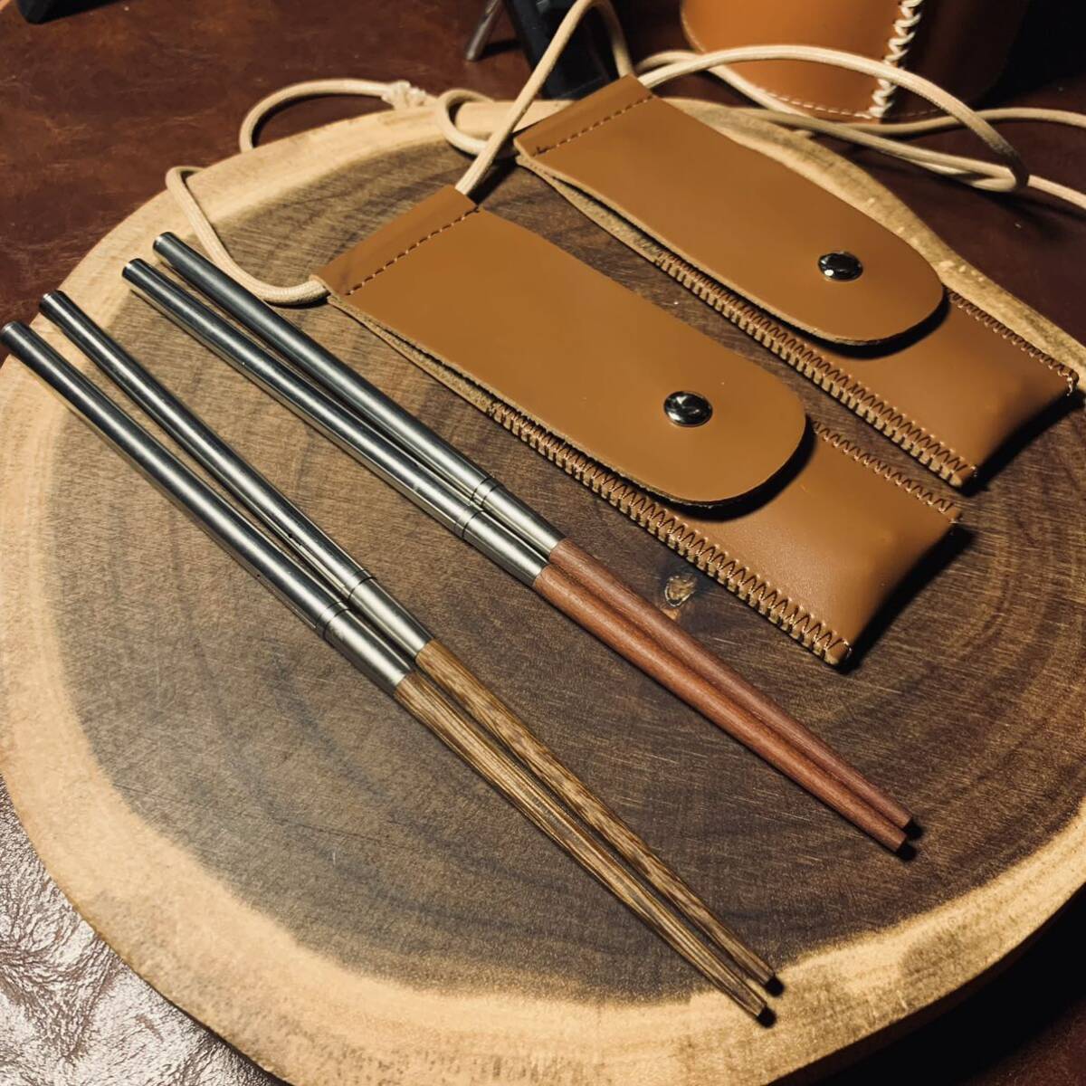 キャップ用 2段式箸 カトラリー 2膳セット 天然木とステンレス製 収納ケース付き アウトドア 野外登山