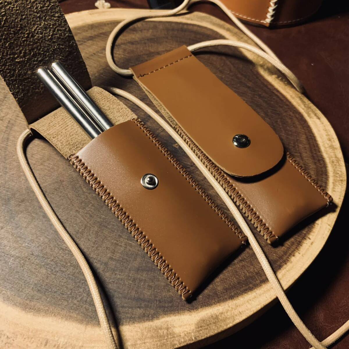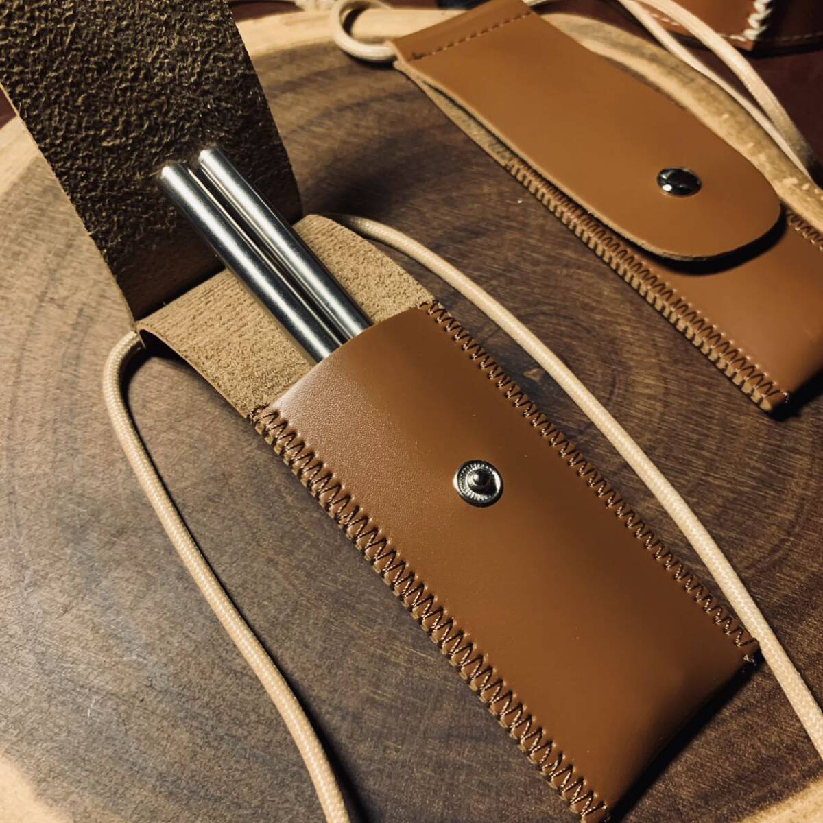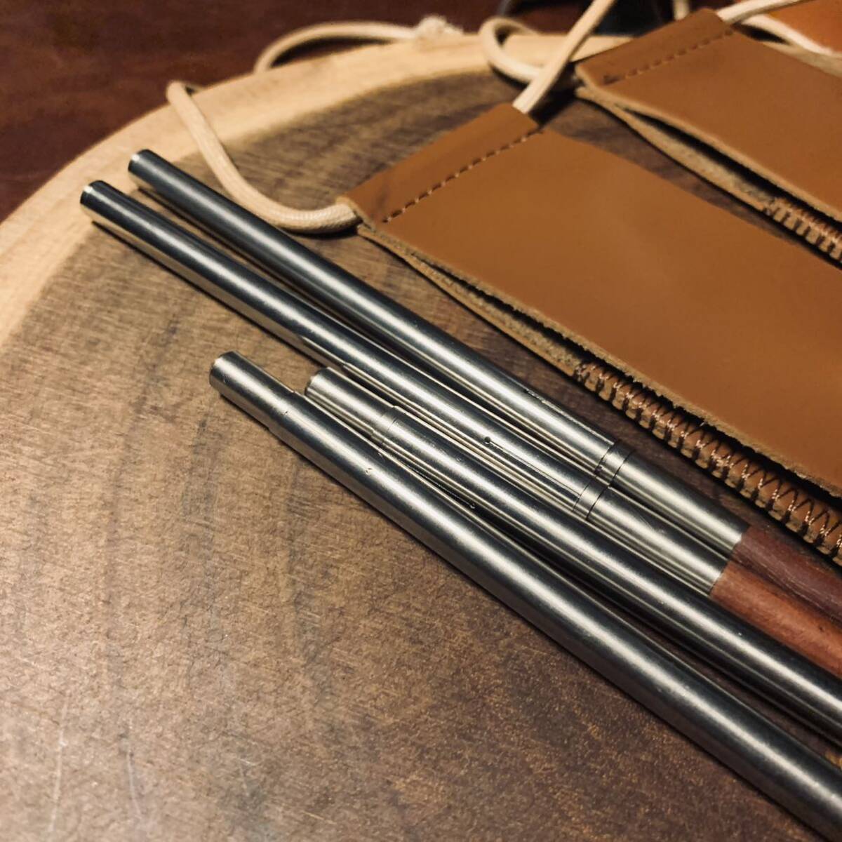 キャップ用 2段式箸 カトラリー 2膳セット 天然木とステンレス製 収納ケース付き アウトドア 野外登山