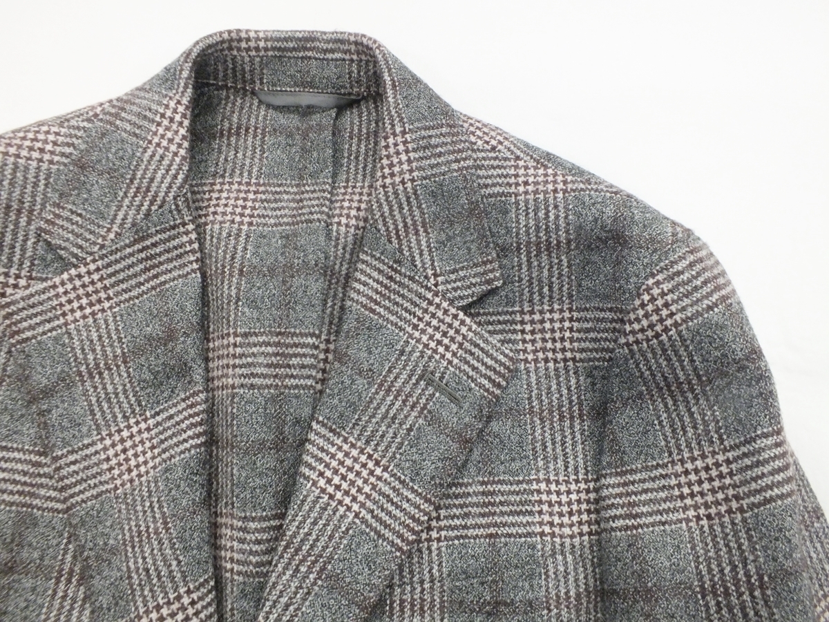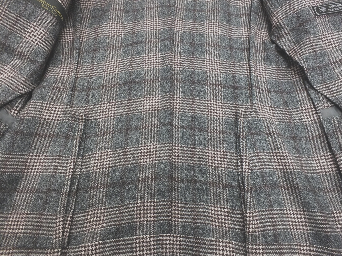 特色 ・薄くて軽い肩パット ・一枚仕立て ・イタリア製高級素材使用 アイテム:3ボタン段返りツイードジャケット サイズ:3L【胸囲96㎝~100㎝ 身長180㎝~190㎝】 上着ベンツ:サイドベンツ 上着胴裏:一枚仕立て 袖釦:4個(重ねボタン) 色:グレー系 柄:グレンチェック 表素材:ウール100% LanificioCampore(イタリア製) 裏素材:キュプラー100%(高級品の証) 縫製:中国 詳細な寸法 SS(胸囲86~88、身長155~165) 胸囲88cm/胴廻り84cm/上着丈66cm/肩幅41.8cm/袖丈58cm S(胸囲88~90、身長160~170) 胸囲90cm/胴廻り86cm/上着丈68cm/肩幅42.5cm/袖丈58cm M(胸囲90~92、身長165~175) 胸囲92cm/胴廻り88cm/上着丈70cm/肩幅44cm/袖丈59.5cm L(胸囲92~94、身長170~180) 胸囲94cm/胴廻り90cm/上着丈72cm/肩幅45.5cm/袖丈61cm 2L(胸囲94~98、身長175~185) 胸囲98cm/胴廻り92cm/上着丈74cm/肩幅46cm/袖丈62.5cm 3L(胸囲96~100、身長180~190) 胸囲100cm/胴廻り94cm/上着丈76cm/肩幅47.5cm/袖丈64cm | ||||