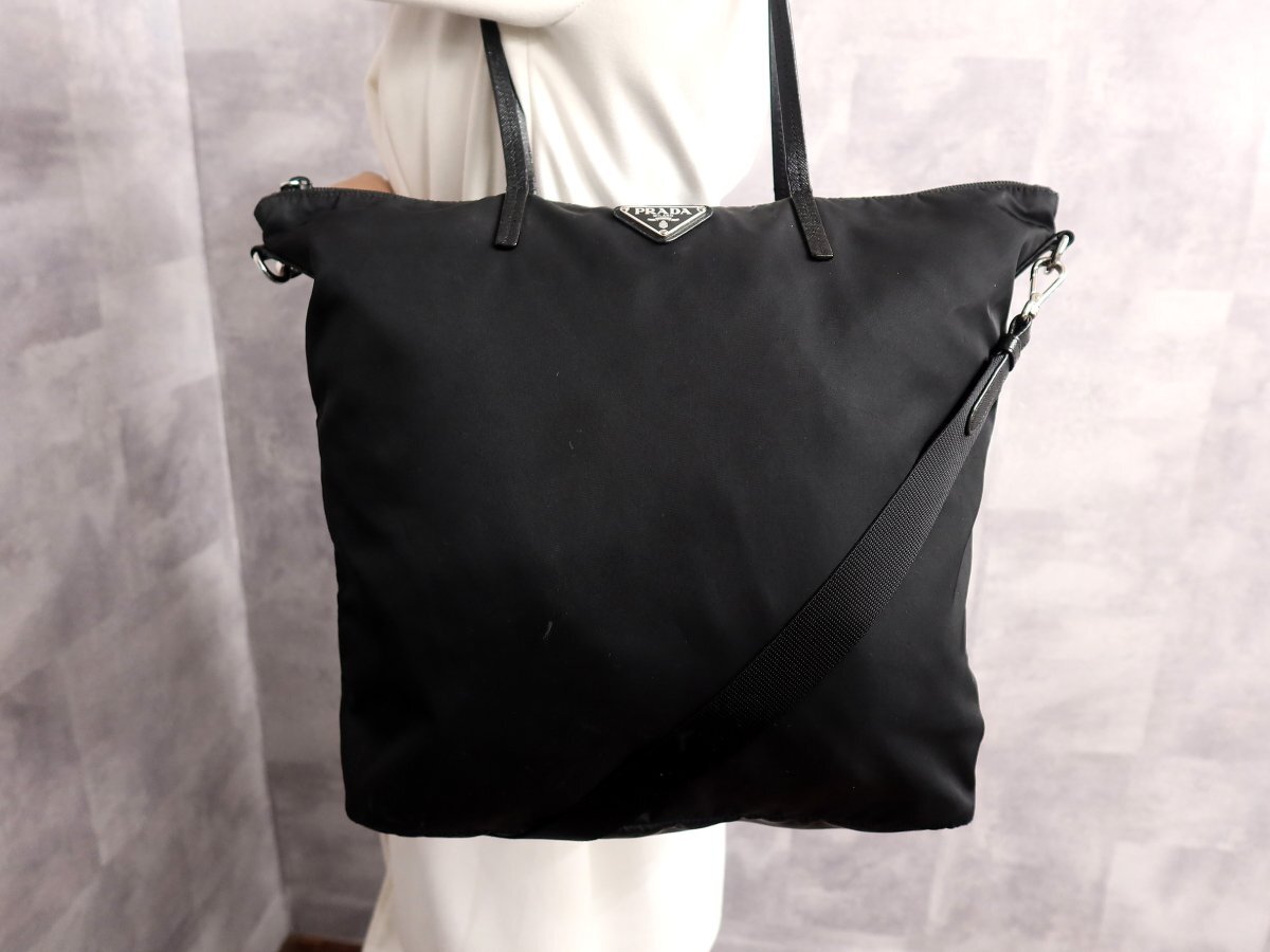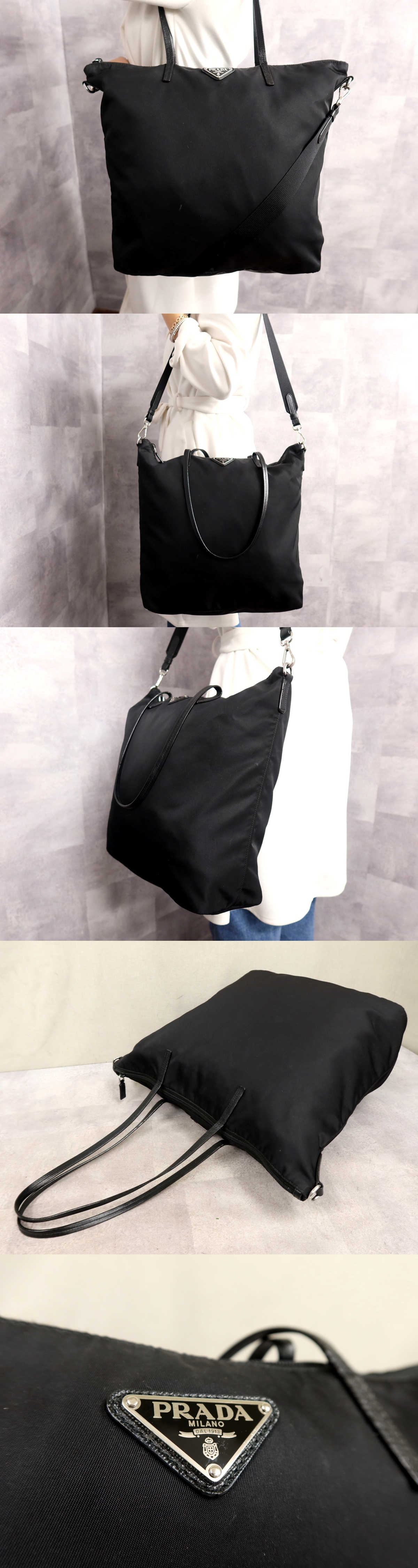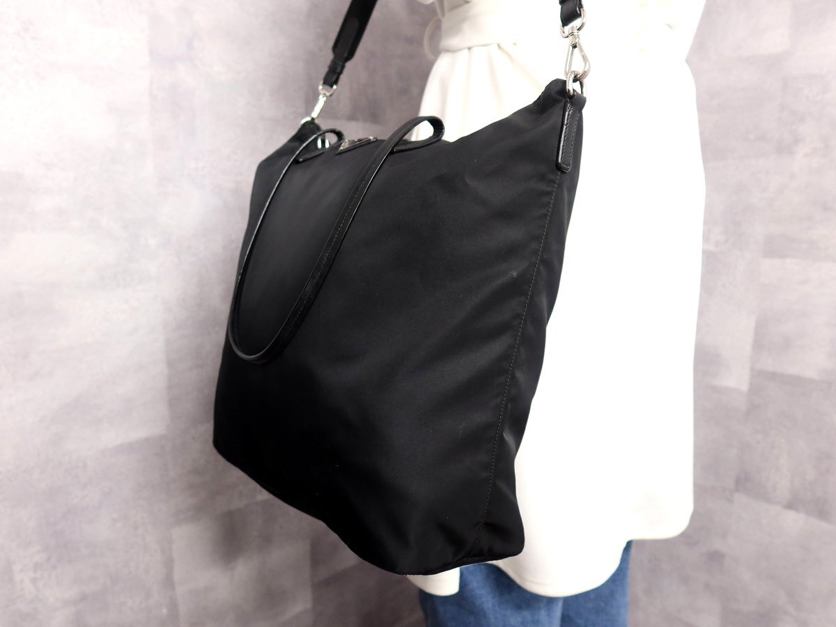 ●超美品●PRADA プラダ●三角ロゴプレート●ポコノ ナイロン サフィアーノ レザー 本革●2way トート バッグ●黒●SV金具●A4●Js62985
