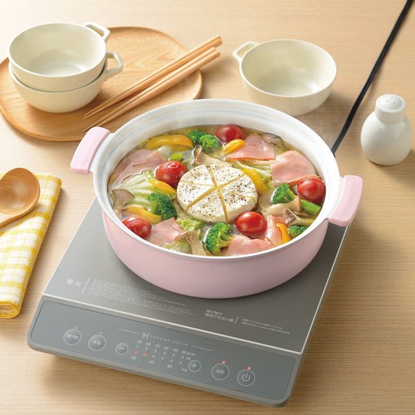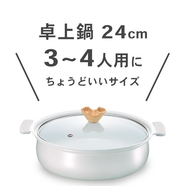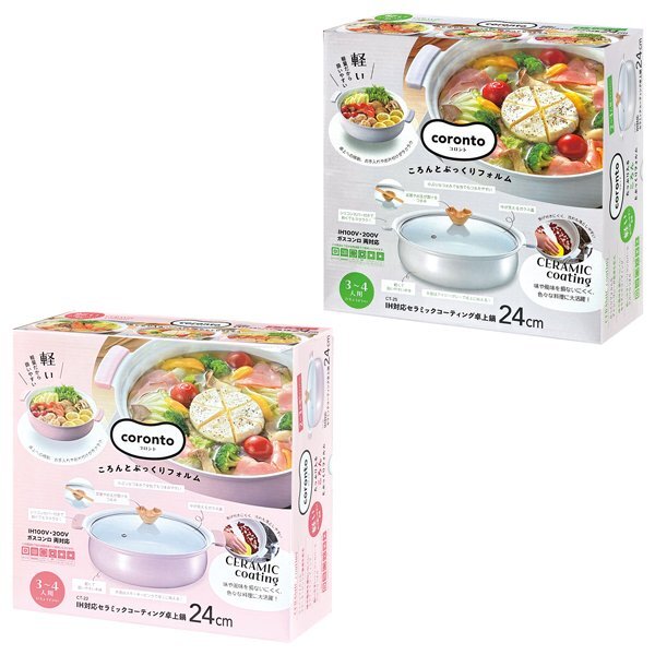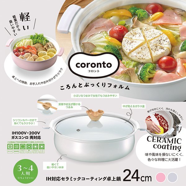 セラミック卓上鍋 24cm セラミックコーティング 3~4人前 ガス IH対応 おしゃれ 深型 調理器具 新生活 送料無料- 80S◇ コロント:グレー