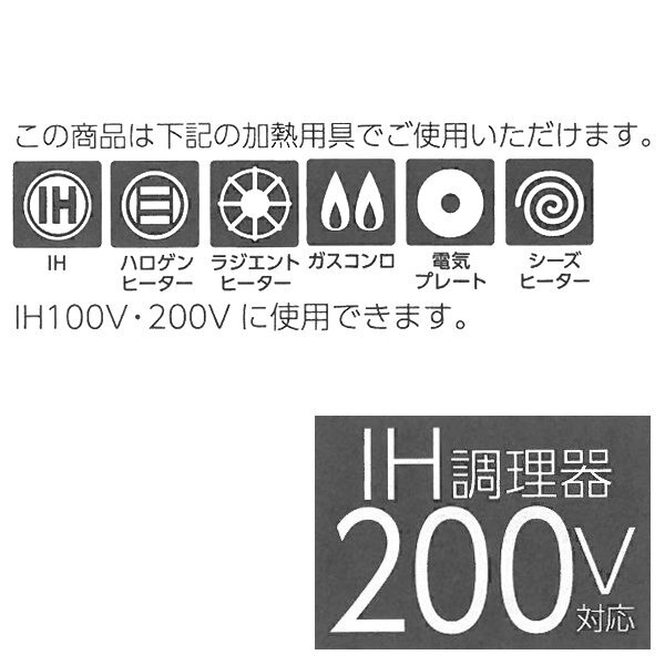 仕様 IH対応(100V・200V)、ガスコンロ対応