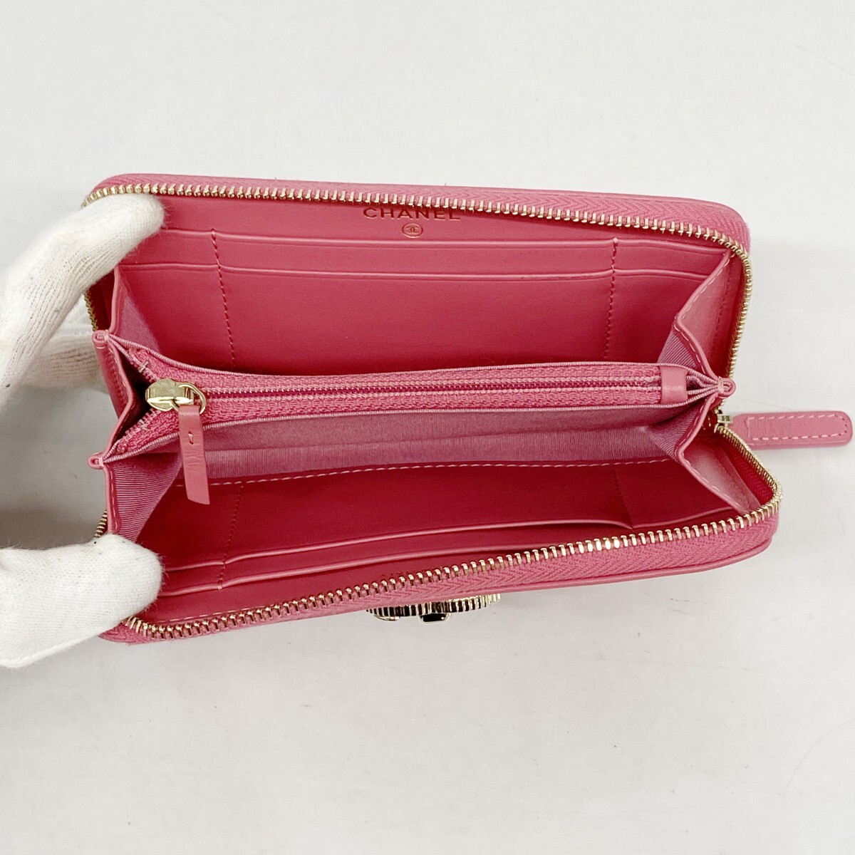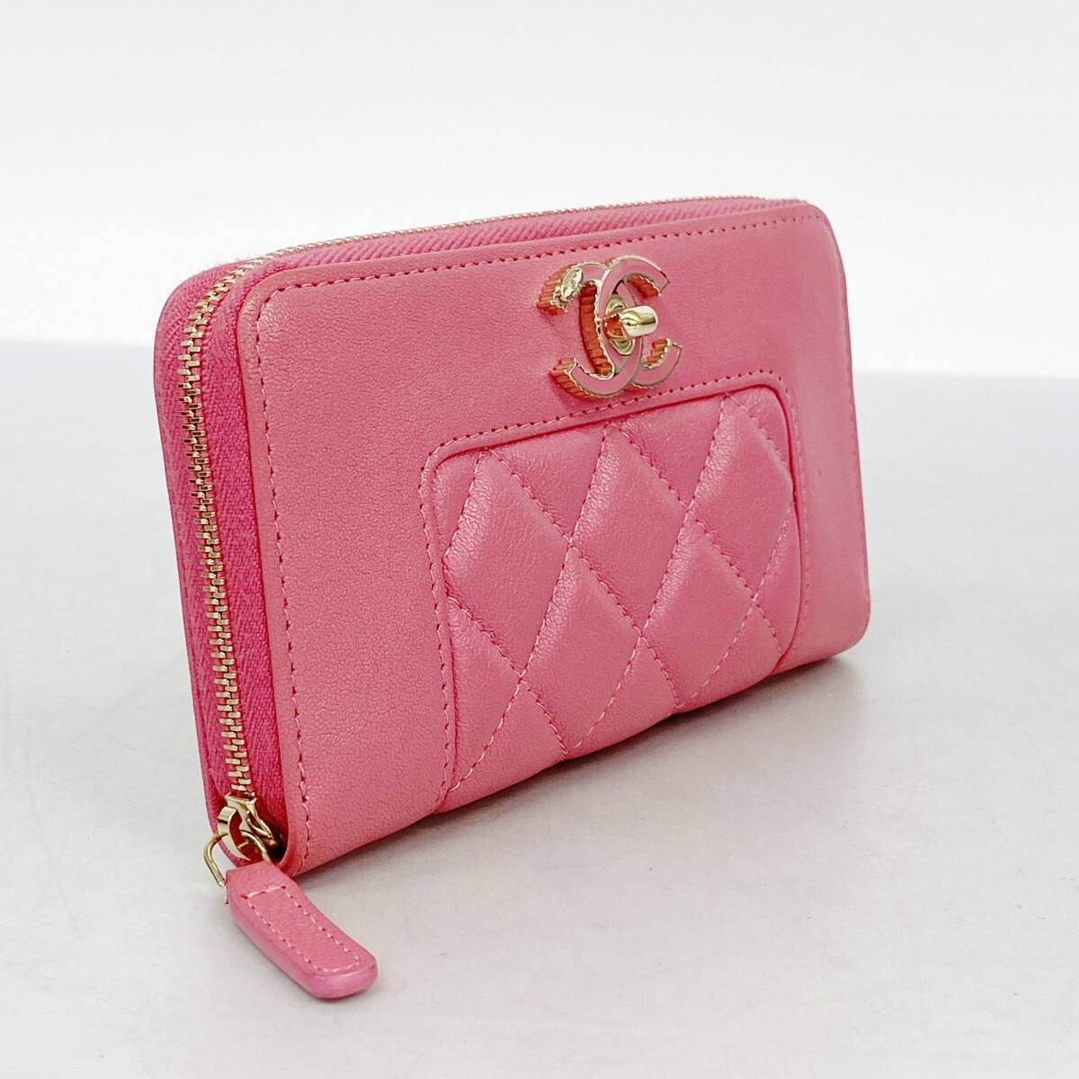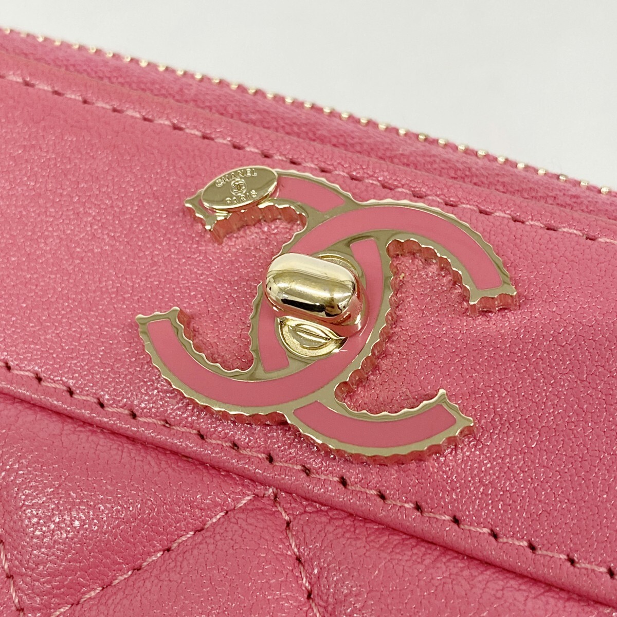 【5pa0522】シャネル コインケース マドモアゼル ラムスキン ピンク ゴールド金具【中古】レディース