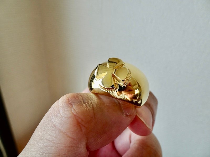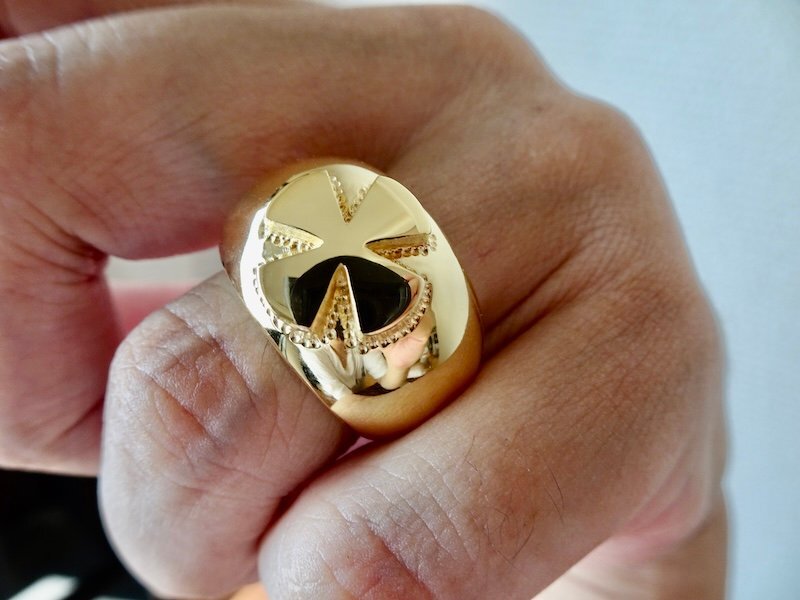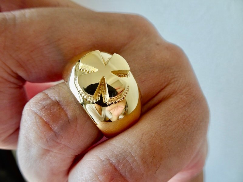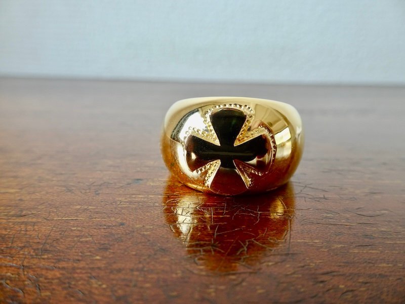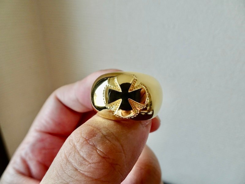 仁尾彫金『k18ゴールド、アイアンクロス甲丸リング』ハンドメイド417