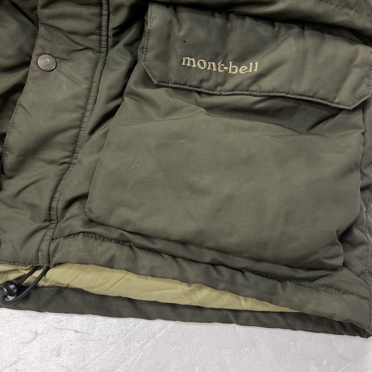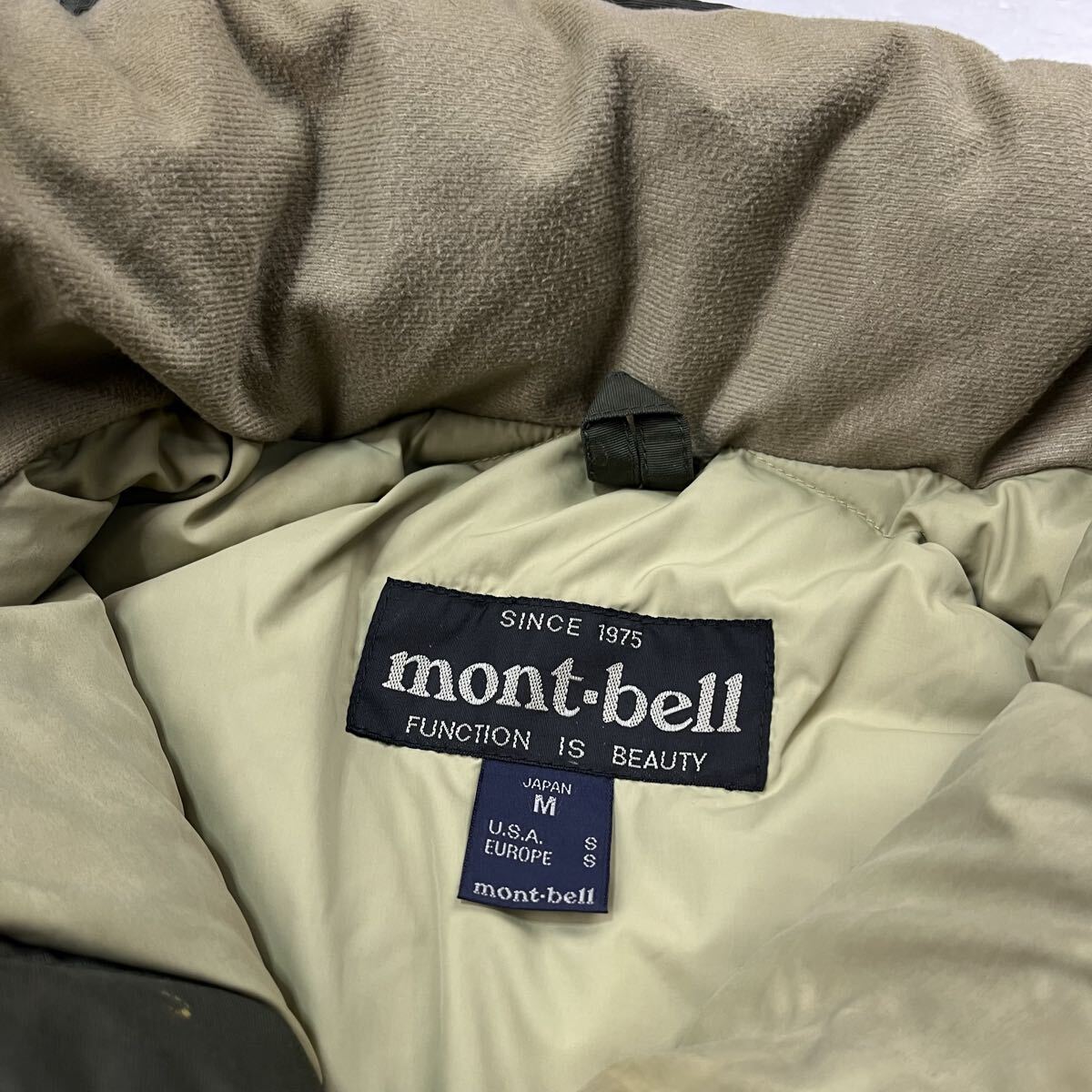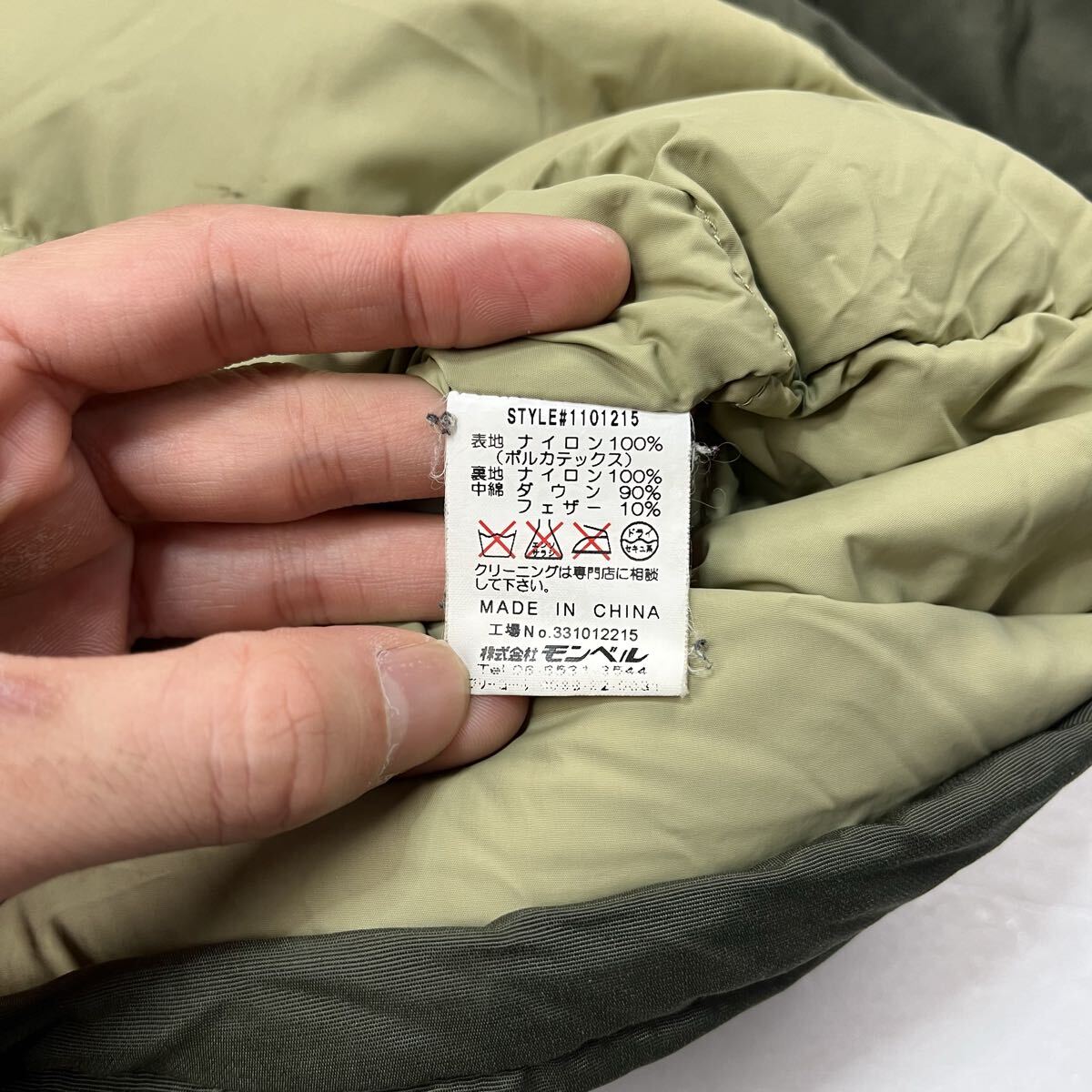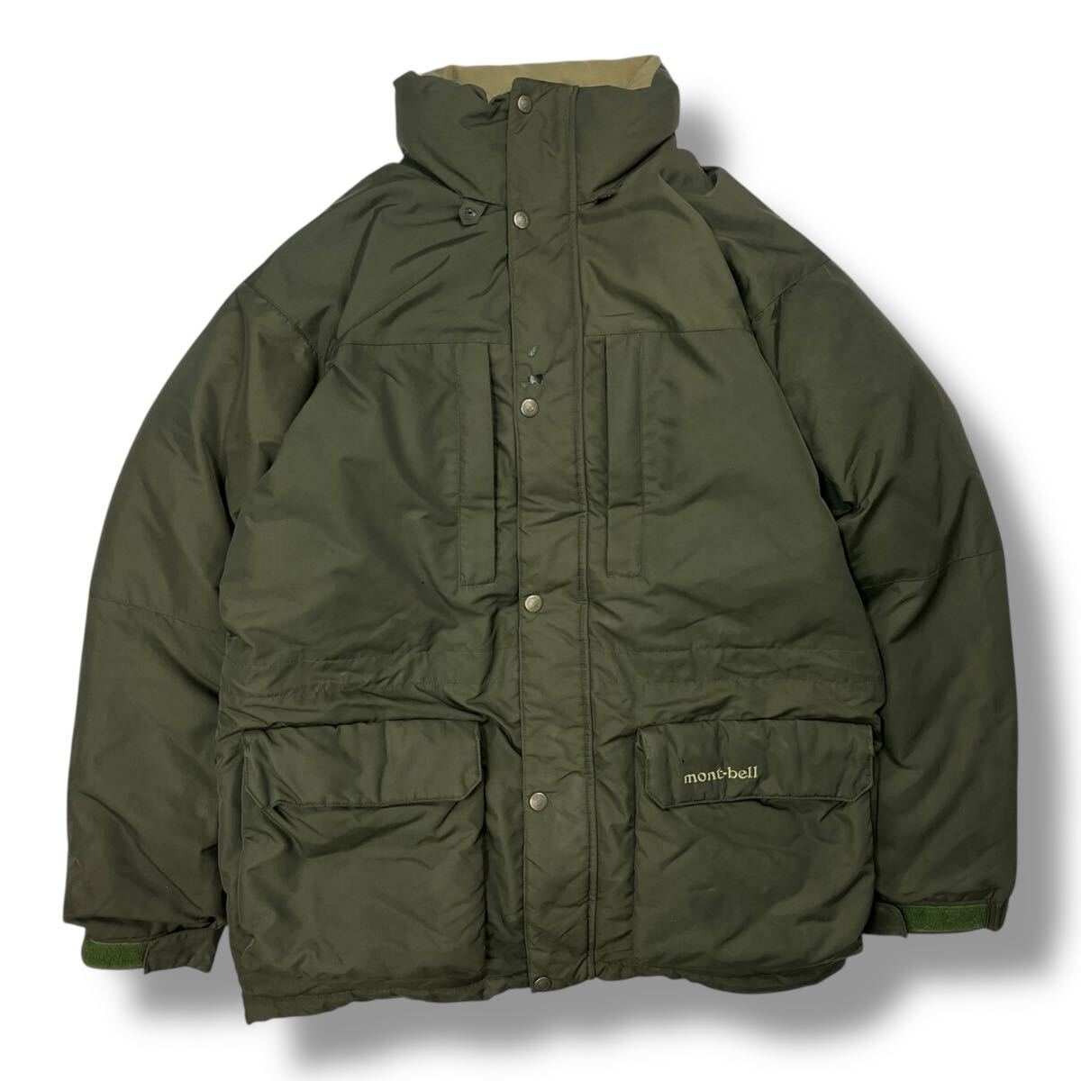 (TK1205)【90s】 mont-bell モンベル ローガン ダウンジャケット ミドル丈 カーキ アウトドア ビンテージ 防寒 定番 フード欠損 M