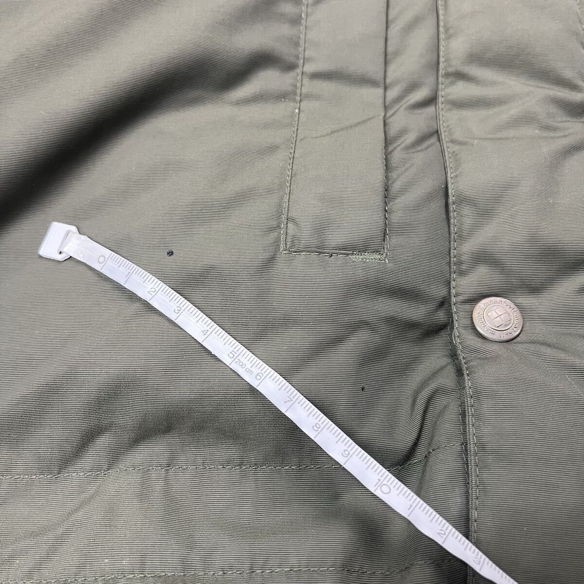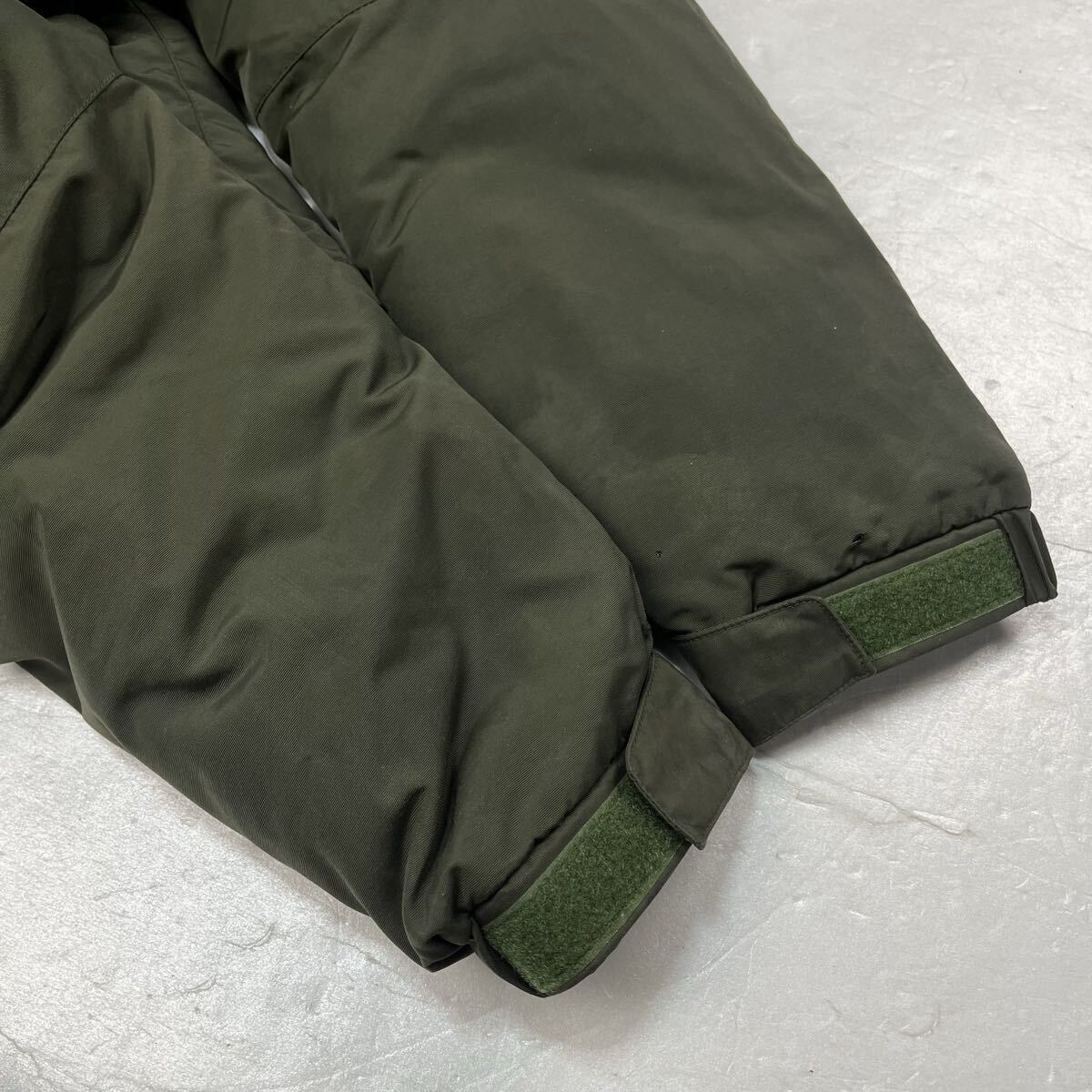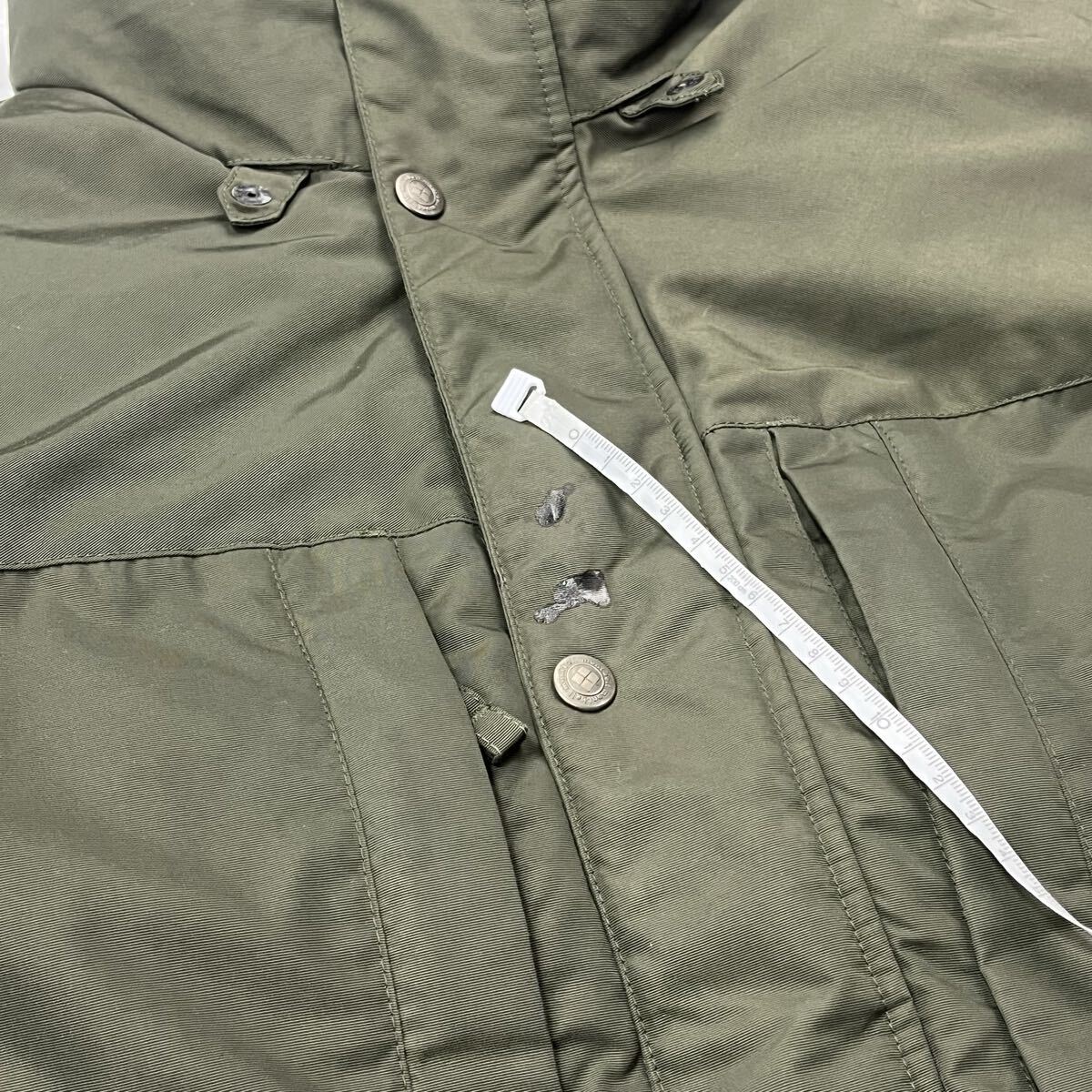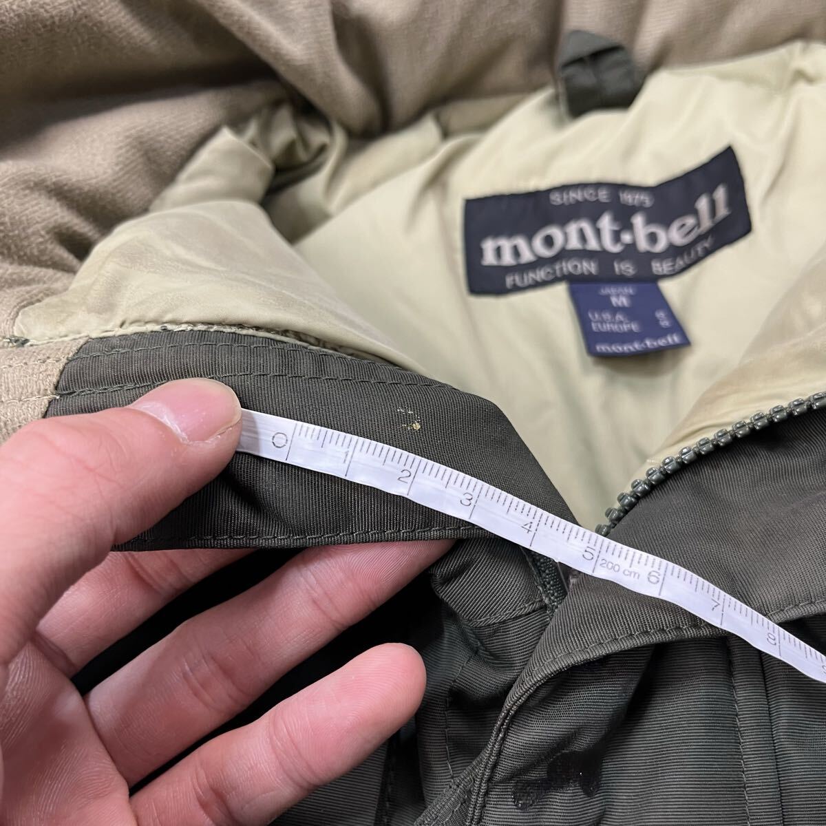 (TK1205)【90s】 mont-bell モンベル ローガン ダウンジャケット ミドル丈 カーキ アウトドア ビンテージ 防寒 定番 フード欠損 M