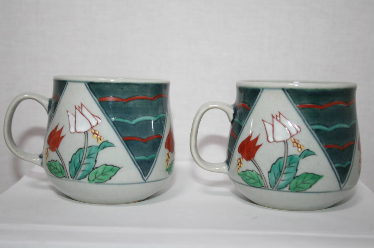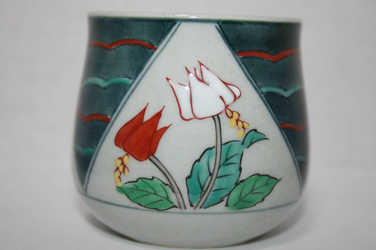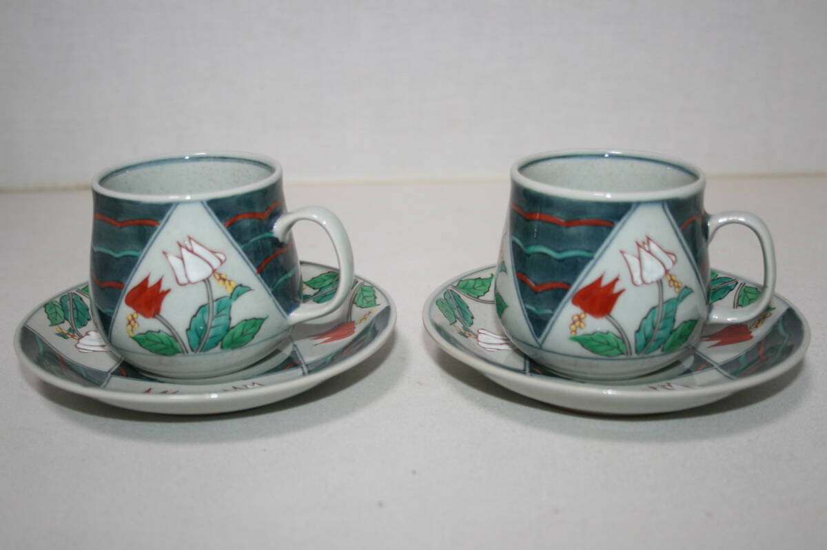 平戸・三川内焼/一葉作/十五代 平戸嘉泉窯の珈琲碗皿です。色絵/草花文を描いた落ち着いた雰囲気の良いお品です。◆目立った傷や汚れは有りませんが、必ず画像確認の上、ご検討下さい◆