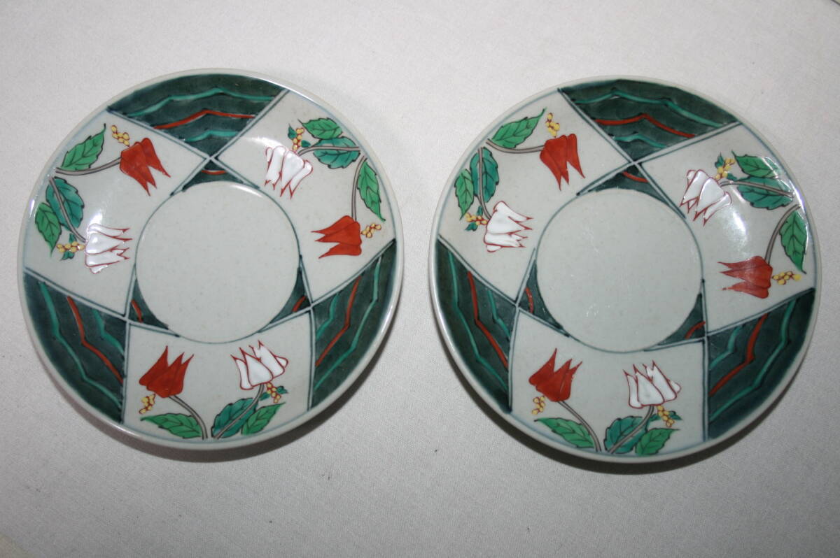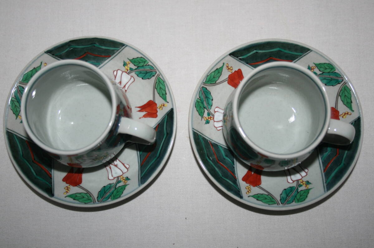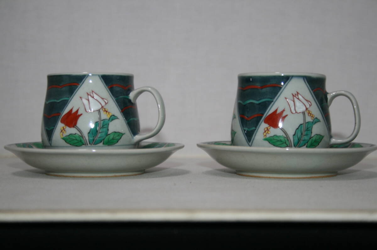 ☆平戸・三川内焼/一葉作/十五代 平戸嘉泉窯/色絵/草花文/珈琲碗皿/2客組☆