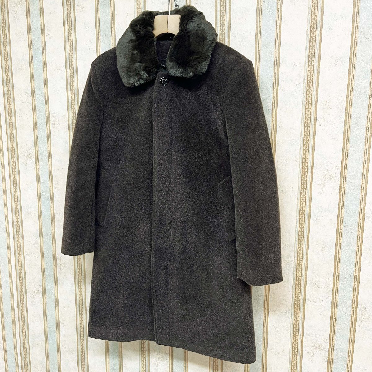 人気 定価8万 FRANKLIN MUSK・アメリカ・ニューヨーク発 ジャケット 豪華毛皮 カシミヤ100% 厚手 防風 防寒 無地 ミドル丈 コート サイズ1