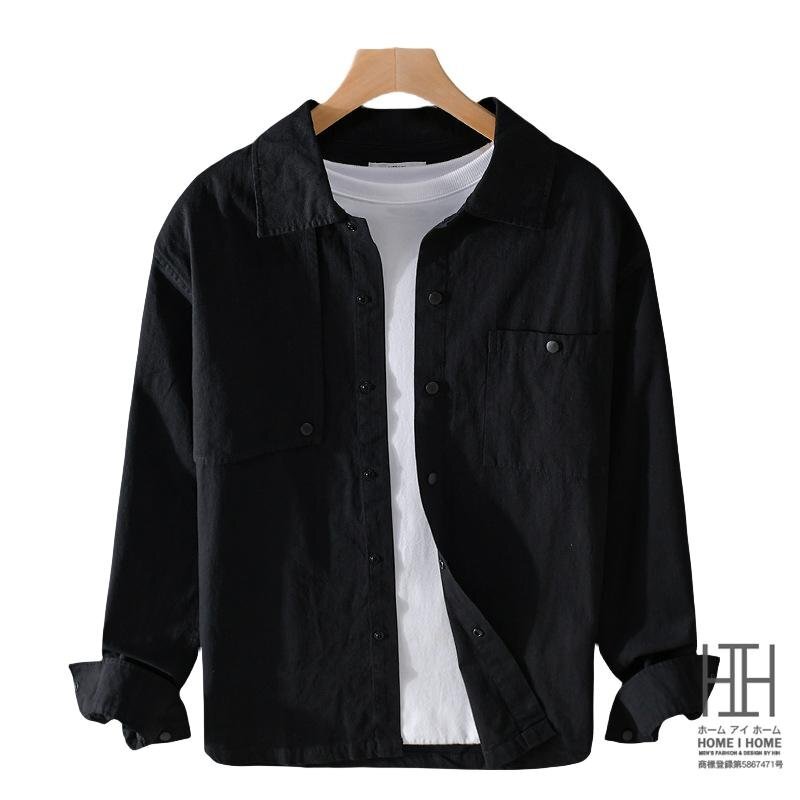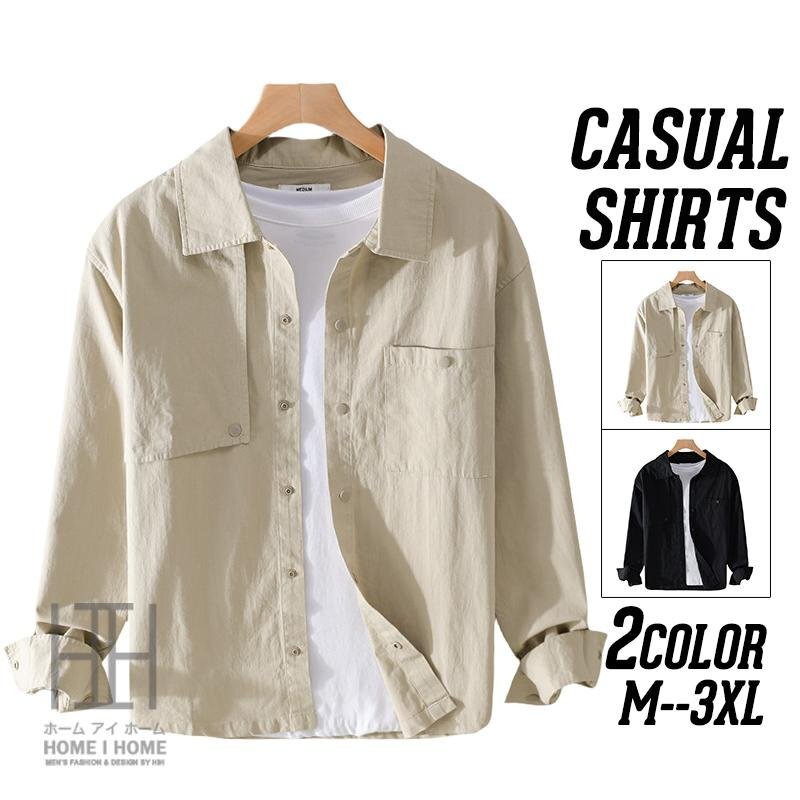 シャツ メンズ 長袖シャツ スナップボタン 綿100 無地 ワーク ストリート カジュアルシャツ ライトアウターシンプル