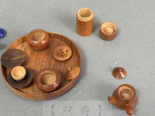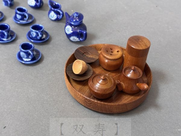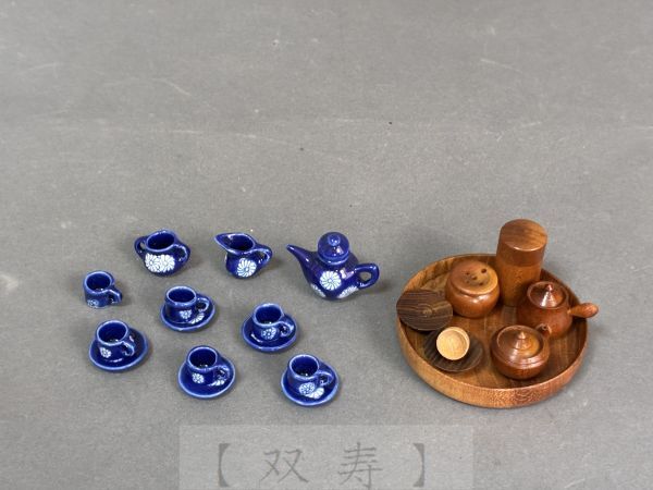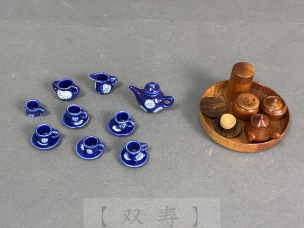 【双寿】古い時代の玩具・ミニチュア食器・『コヒーセット・煎茶セット』陶器・木製