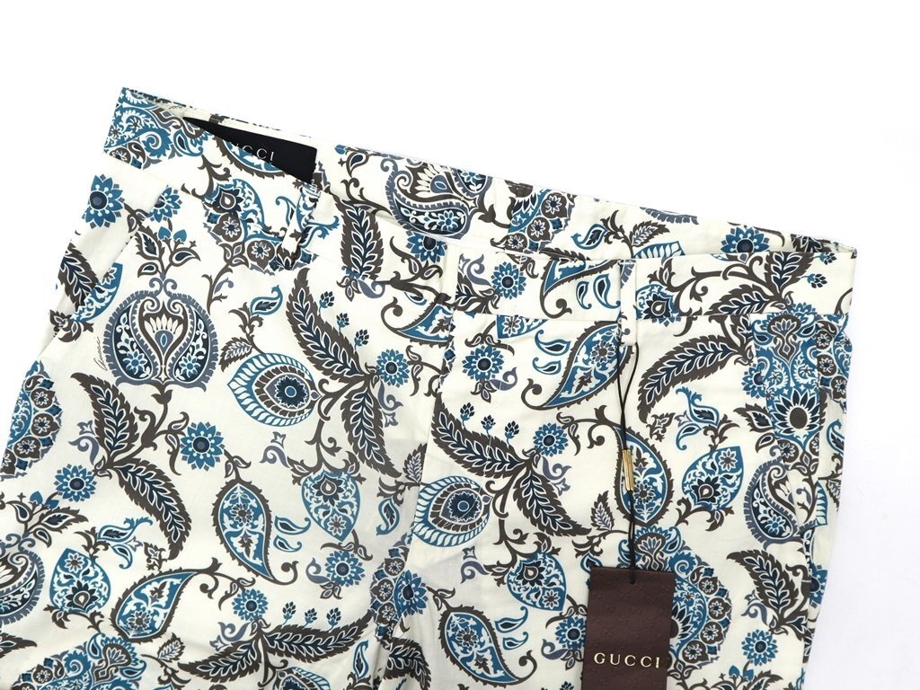 【商 品】・・・28万新品◆50=M~L◆GUCCI グッチ ペイズリー柄 ストレッチパンツ アイボリー白tight fit