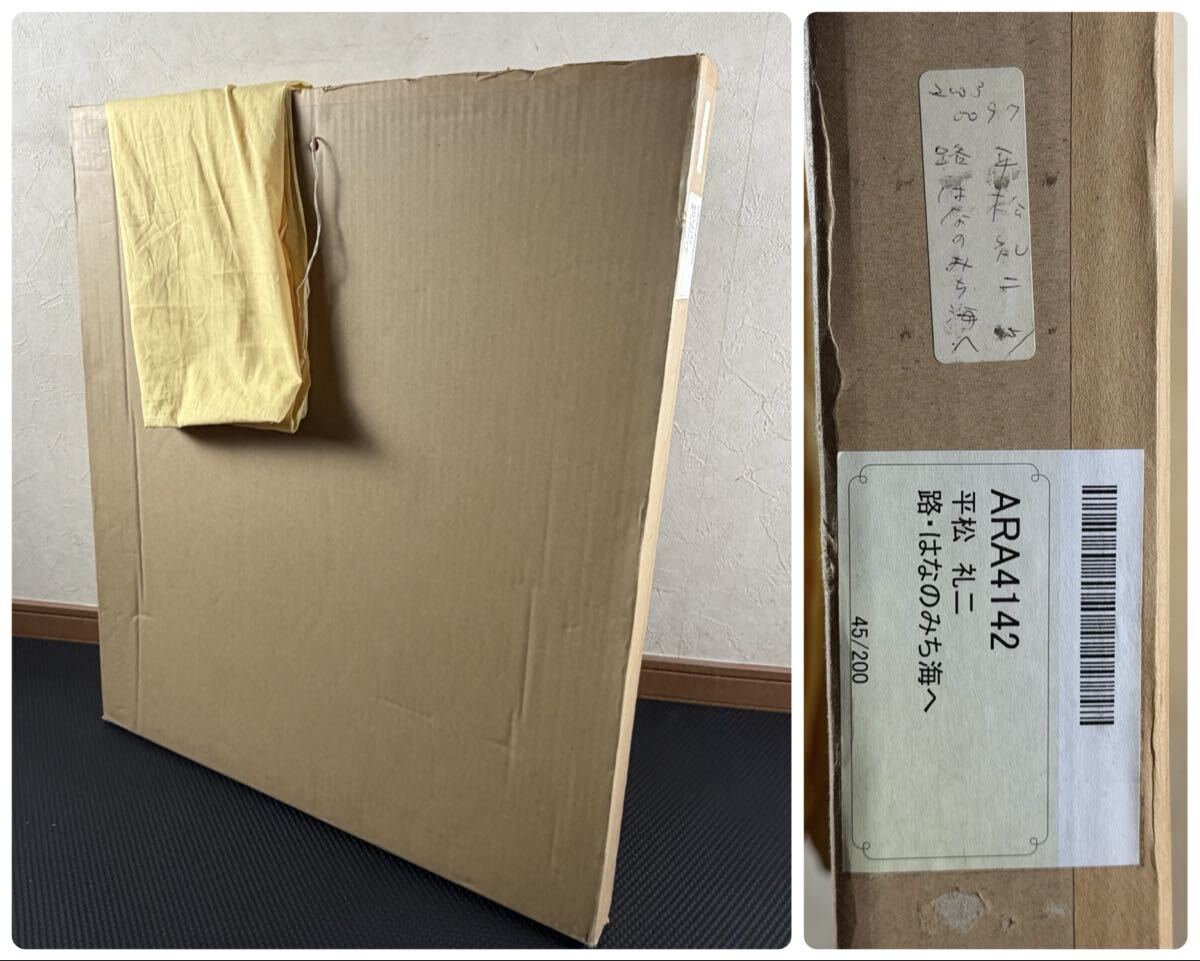 平松礼二 「路・花のみち海へ」 シルクスクリーン 限定200部 エディション 直筆サイン ダンボール箱 黄布 額装