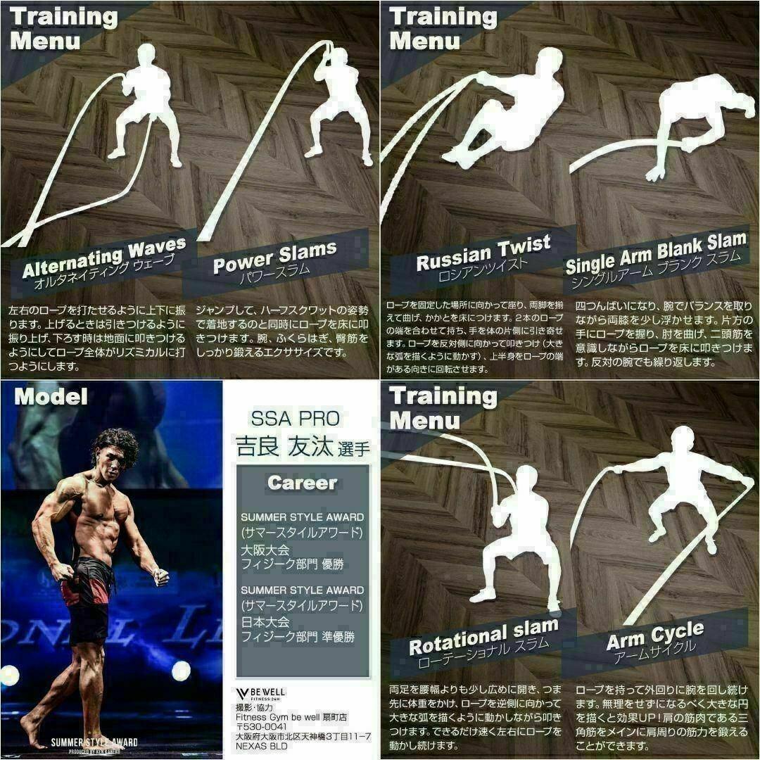 長さ9mレギュラータイプで十分に負荷を調節できるので初心者の方は勿論、上級者でも満足の行くトレーニングが可能です。