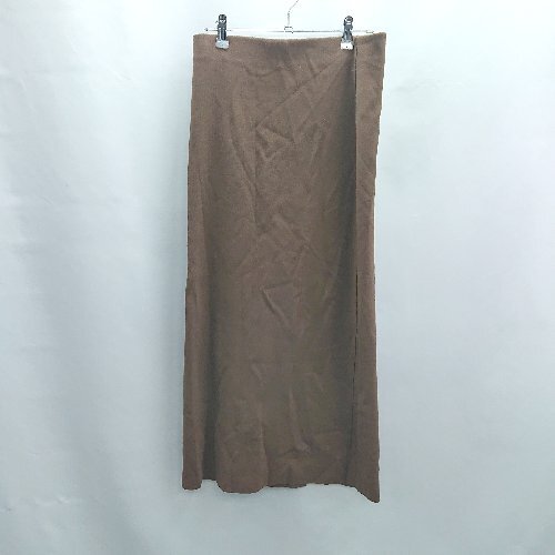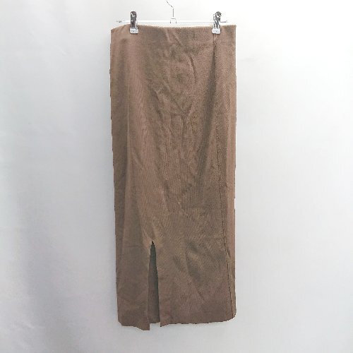 ◇ Θ Mila Owen ミラオーウェン ウエストゴム スリット入り ミドル丈 タイト スカート サイズ1 ブラウン レディース E