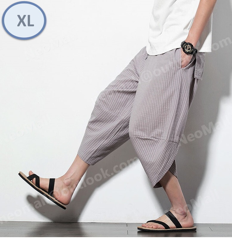 お買い得☆メンズ サルエルパンツ グレー XL カジュアル ヒップホップ 7分丈 スウェット 無地 ポケット付 オールシーズン【063】