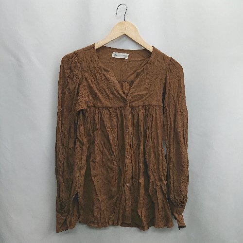 ◇ ⊂ MW SUNRISE エムダブリューサンライズ 長袖 シャーリングブラウス サイズF ブラウン レディース E