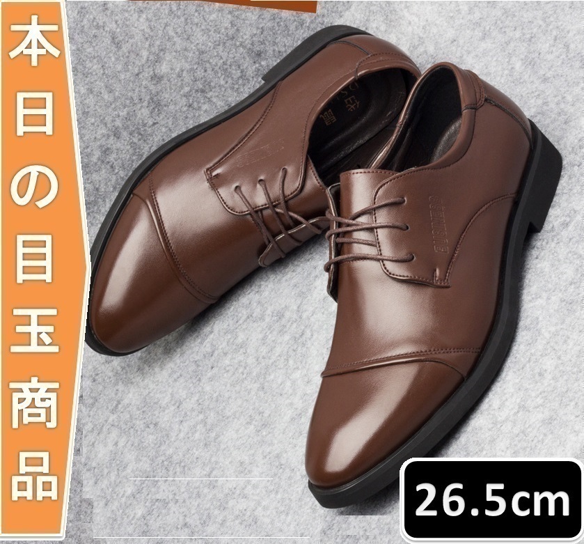 【本日の目玉】メンズ ビジネス レザー シューズ ブラウン サイズ 26.5cm 革靴 靴 カジュアル 屈曲性 通勤 軽量 柔らかい 新品 【159】