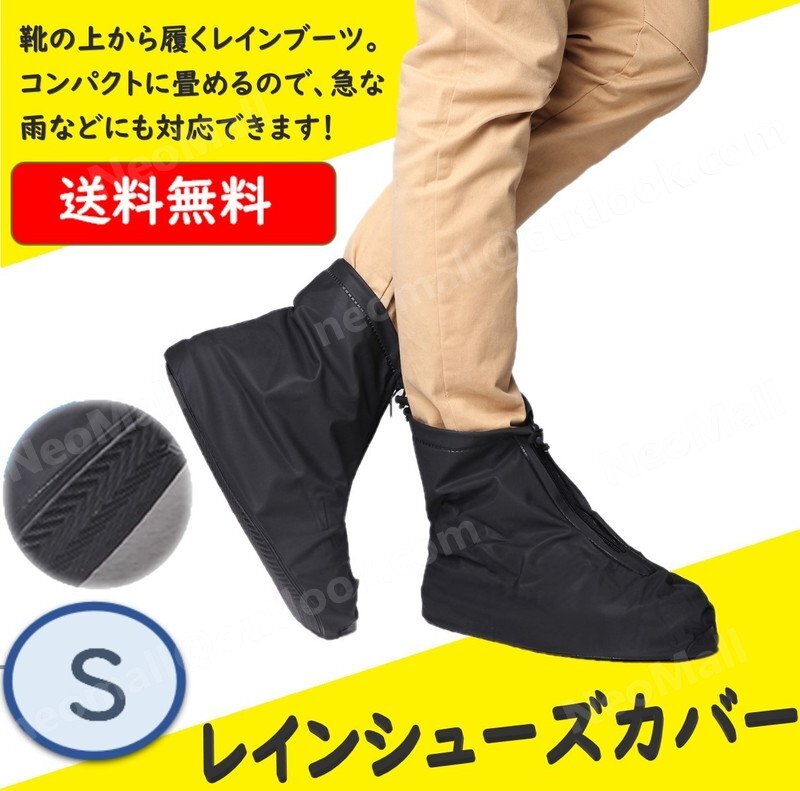 レインシューズカバー 雨 から 靴を 守る! 防水 23.0?23.5cm対応 Sサイズ ブラック 自転車 バイク 通勤 通学 登山