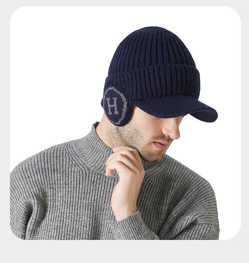 ツバ付き ニットキャップ ニット帽 ネイビーブルー ワッチキャップ 帽子 アウトドア ユニセックス メンズ レディース 男女兼用 n820