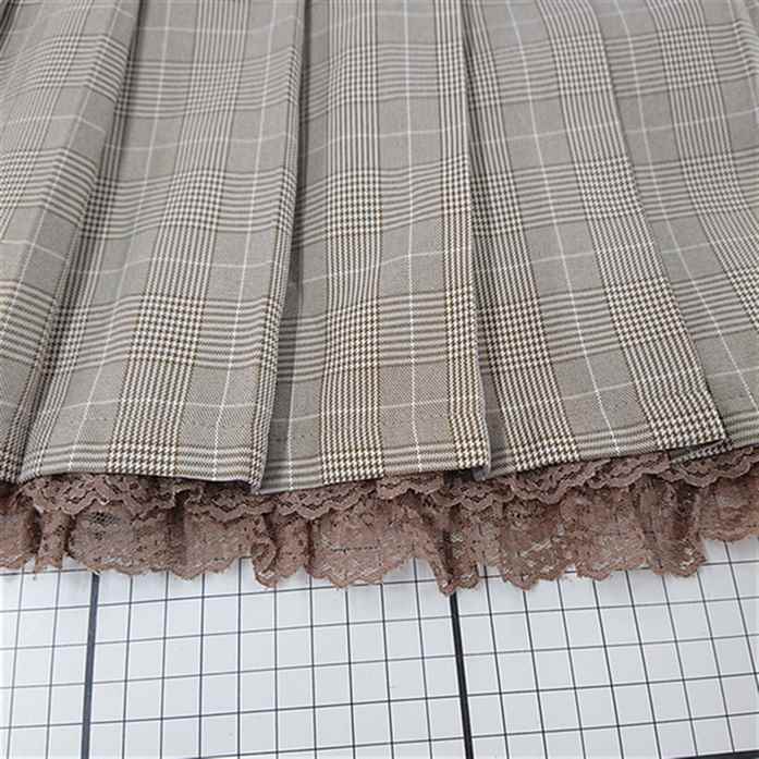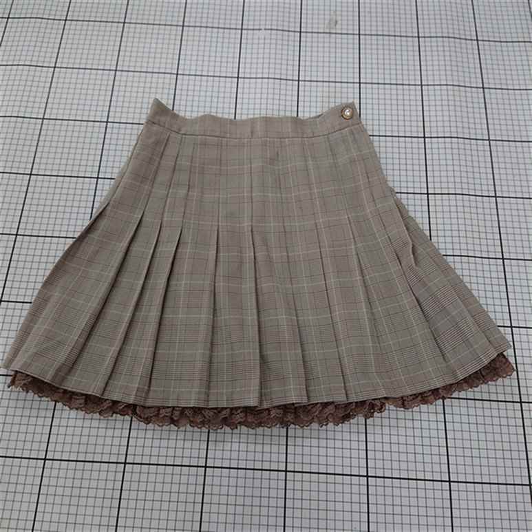 ◇ Θ アンクルージュ AnkRouge チェック柄プリーツスカート レース付き Mサイズ レディース ベージュ系 E