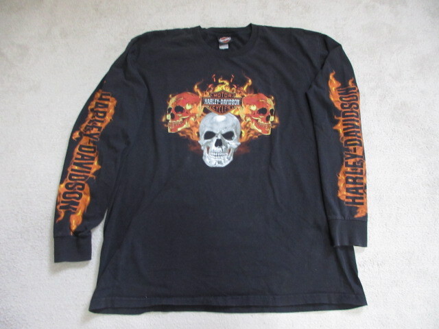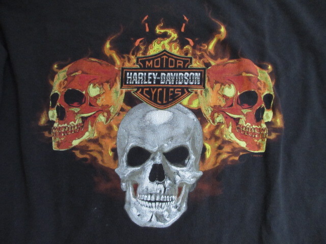 USA購入 ビンテージ Y2K 2008 ブラック 黒 ハーレーダビッドソン 袖プリ HARLEY DAVIDSON スカル バイカー Tシャツ ドクロ 髑髏 90S