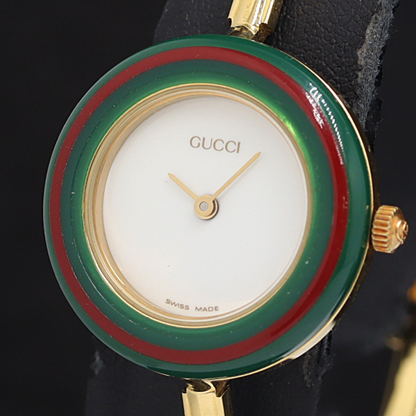 1円 箱付 稼働 グッチ チェンジベゼルウォッチ 11/12.2 1255312 QZ ホワイト文字盤 レディース腕時計 6857400 12KHT SMZ