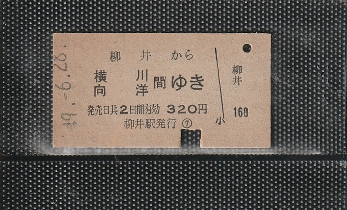 国鉄広島印刷 柳井から横川・向洋 A型 青地紋 硬券乗車券 下パンチ券