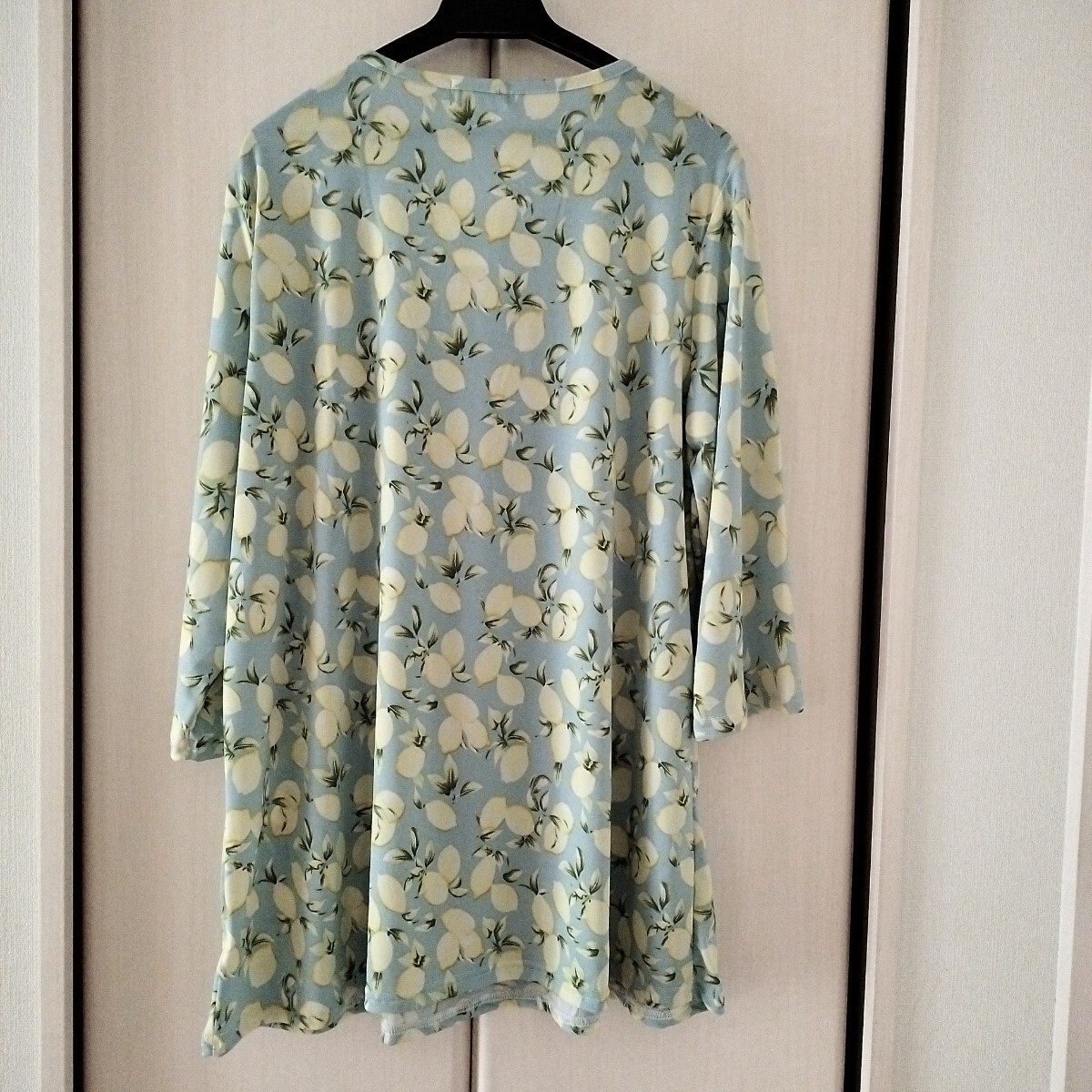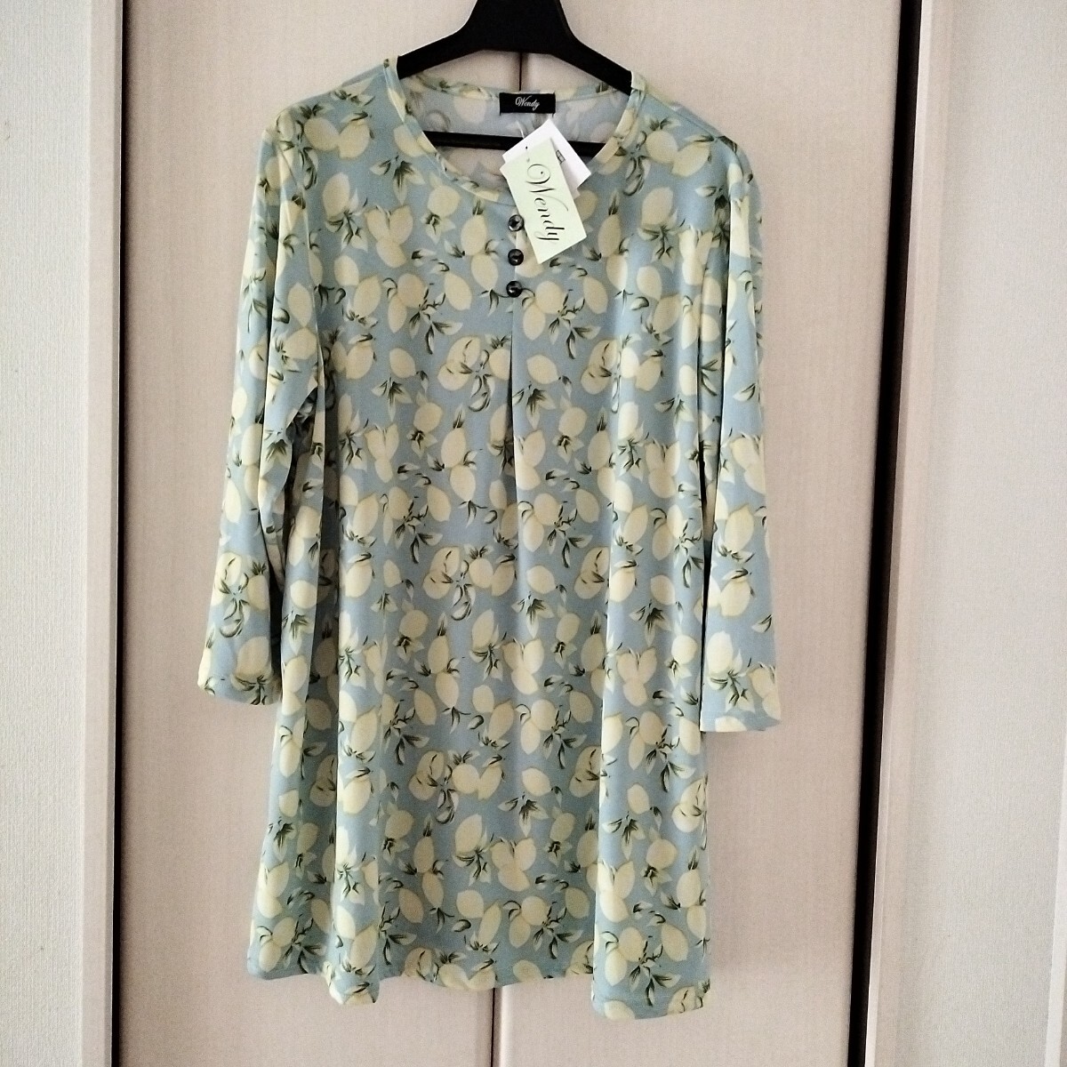 【M~Lサイズ】新品 Wendy 七分袖 チュニック カットソー 関西ファッション連合 レディース トップス ミセス 飾りボタン B509 水色 レモン