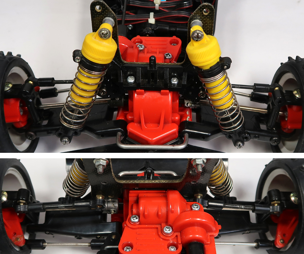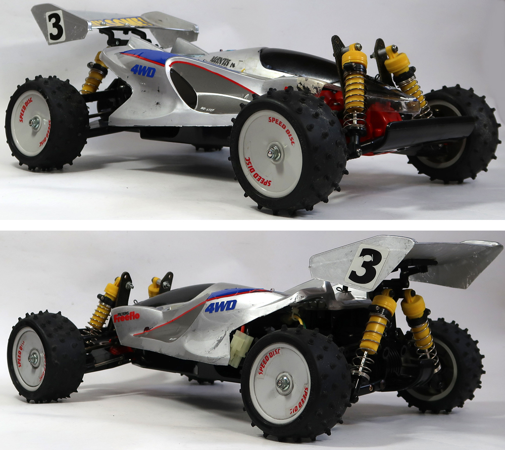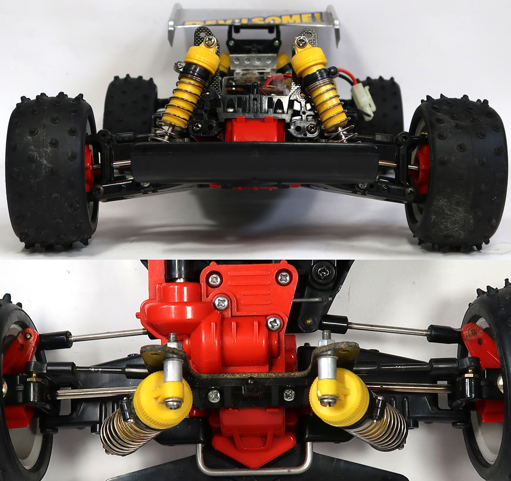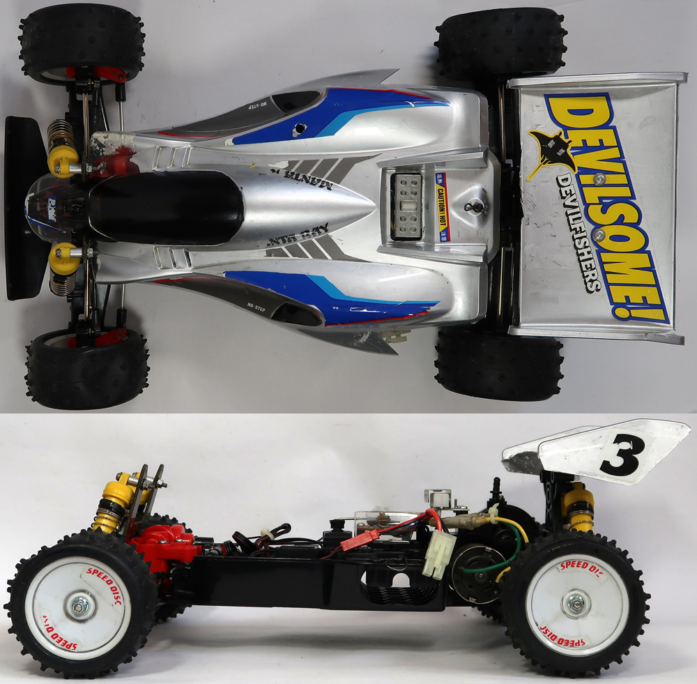 出品は画像の物のみです。他に必要なものはご自分でご用意ください。付属のバッテリーは使用可能ですが、消耗品ですのでいかなる状態であったとしてもノークレームです。バッテリーが不要な方がいましたら落札後にお伝え下さい。出品前にある程度のクリーニングはしております。シャーシ下部はそんなにひどい傷はないです。使用品ですので所々に擦り傷や汚れが有ります。ボディは何箇所か亀裂が入っていたりヒビがある箇所があります。ボティのステッカーが剥がれていたり、塗装が剥がれている箇所があります。タイヤの変形はあります。フロント周りはカスタムされております。おそらくTA02のギアボックスにカスタムパーツをつけてオリジナルのものと交換がされております。右ナックルアームのサイド部分と両方のナックルアームのリンケージへの取り付け穴の修復しております。アクリルサンデーで溶かしてくっつけています。画像をご覧ください。補修後は外での走行はしておりませんので、実際の走行でどの程度強度があるのかわかりません。すぐに破損する可能性もあります。私が確認する限りはその他にひどい破損は確認出来ませんでした。画像をご覧のようにサンワの送信機、サーボと受信機が付属します。バッテリーを充電してテストしましたが、動作はしました。完璧に動作させるためにはさらなるメンテナンスは必要かと思います。また補修箇所が再度破損する可能性があるのでその箇所のパーツ交換が必要かもしれません。分かる事は以上です。お取引後は一切のサポートはしておりません。また必要なパーツはお取り引き後にご自分でお調べください。お取り引き後に説明以外の不足品や説明以外の破損や故障が有ったとしても返品は出来ませんしクレームもお受けできません。