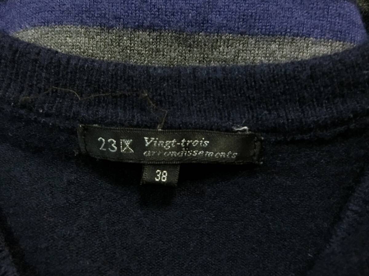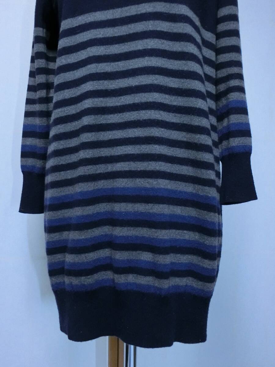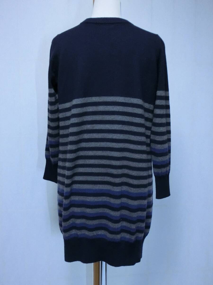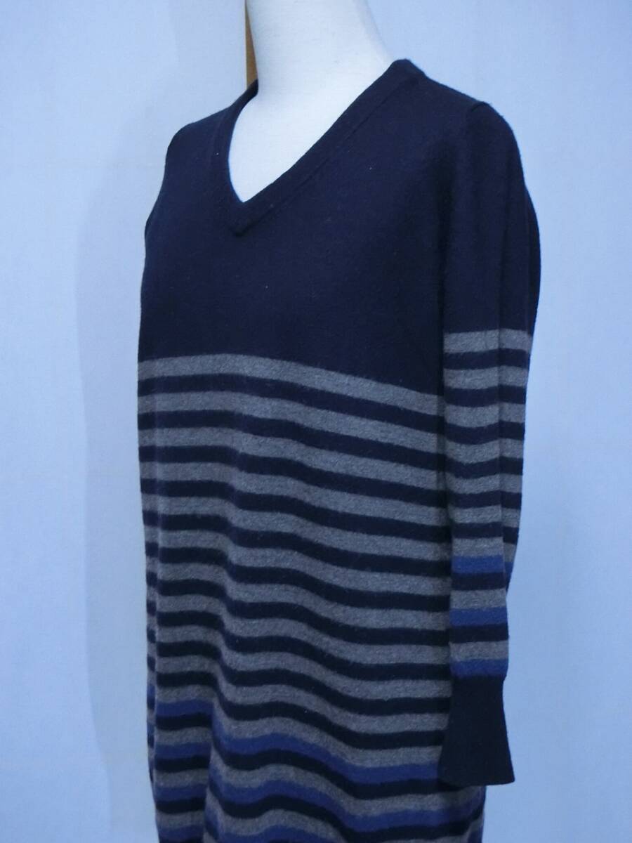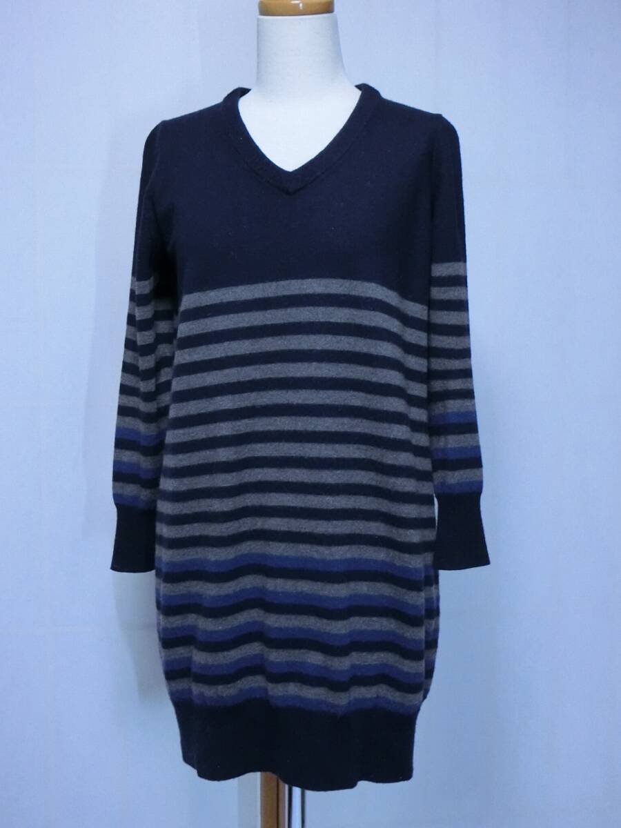 ★23区 ネイビーとグレーとパープルブルーのボーダーでVネックの長袖ニットワンピース 38★組曲 自由区